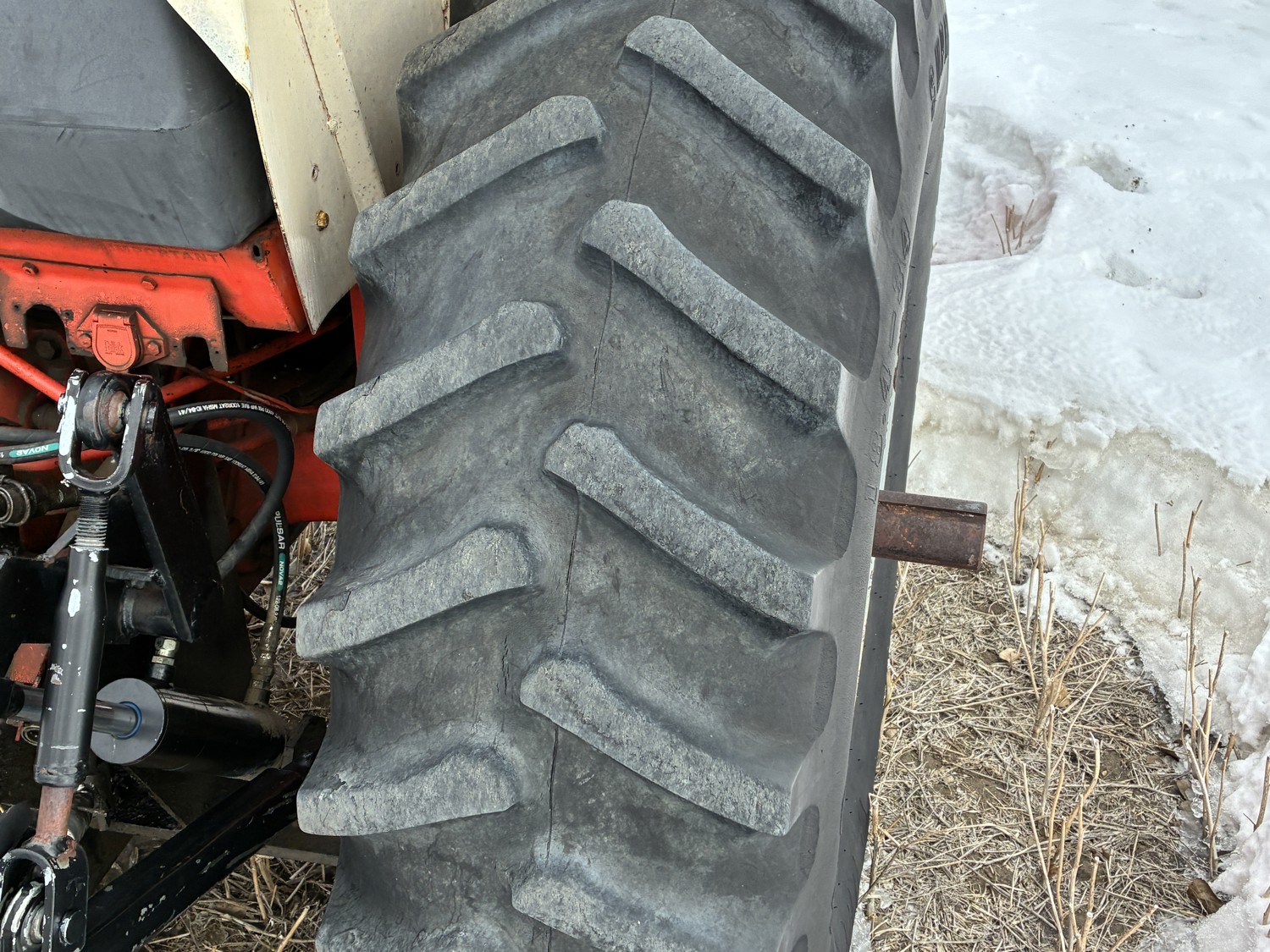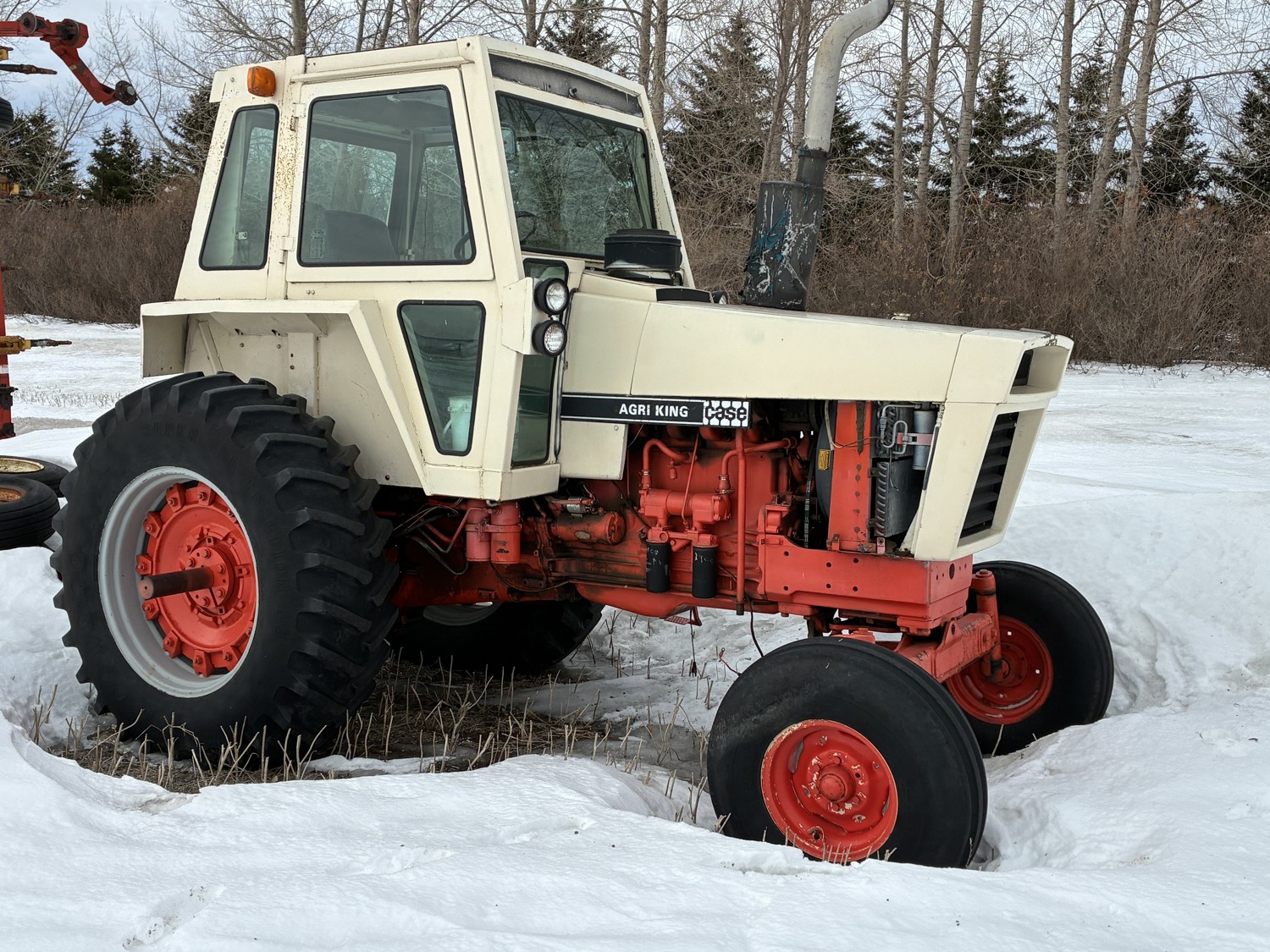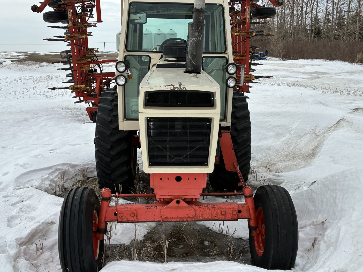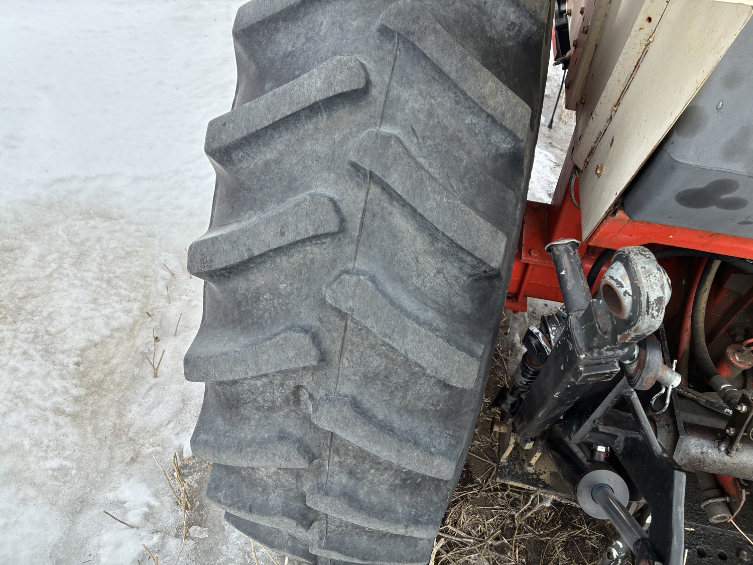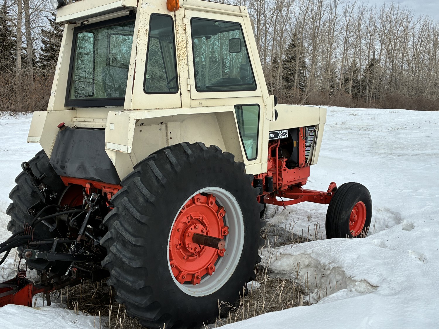 J.I. Case 451 cu in 6 cylinder 112 HP, diesel engine, hydro 3 range transmission, cab, A/C, radio, 540/1000 PTO, 3 point hitch, 2 rear hydraulic outlets, 10.00-16 front tires, 16.4R34 rear tires