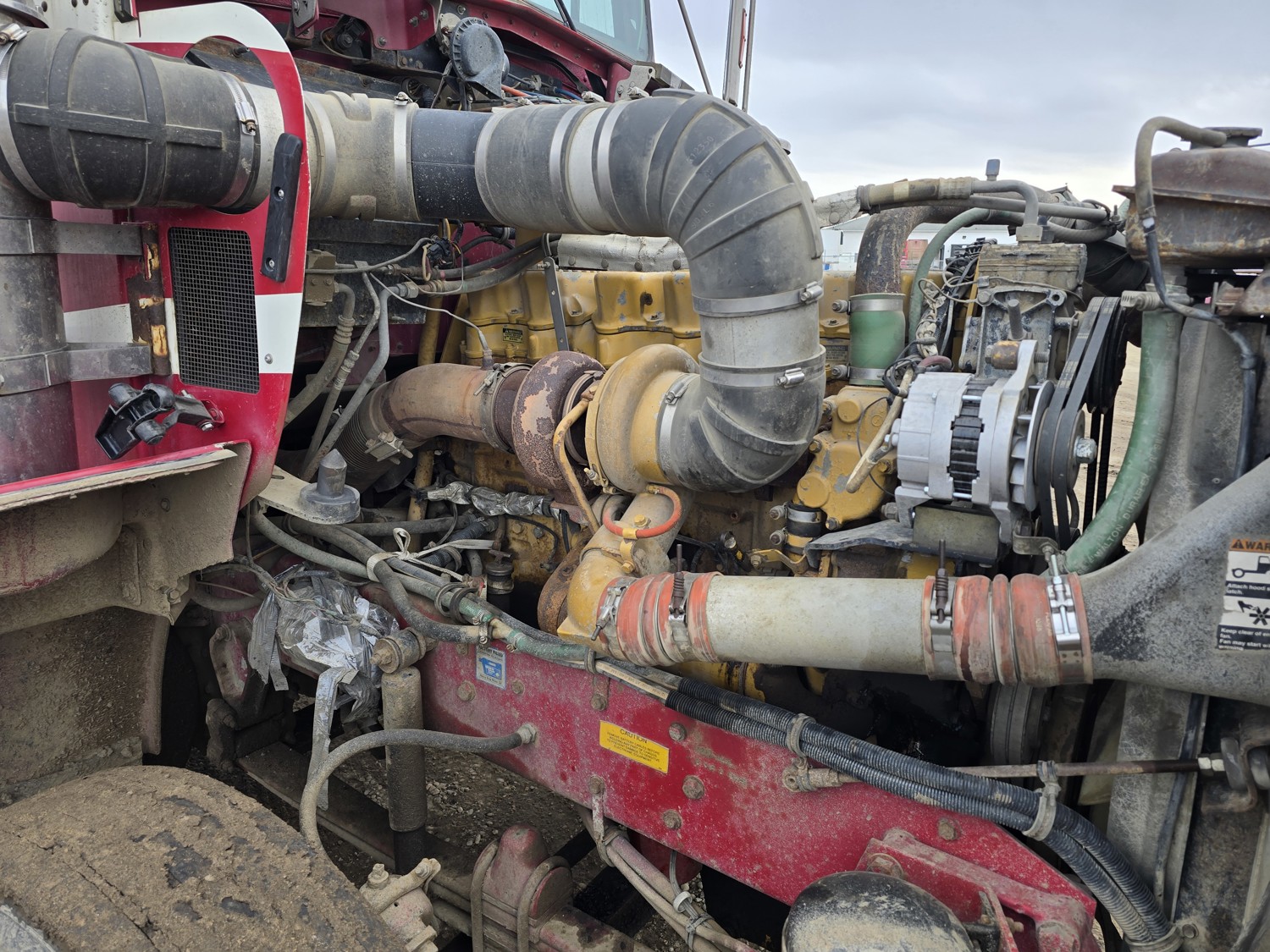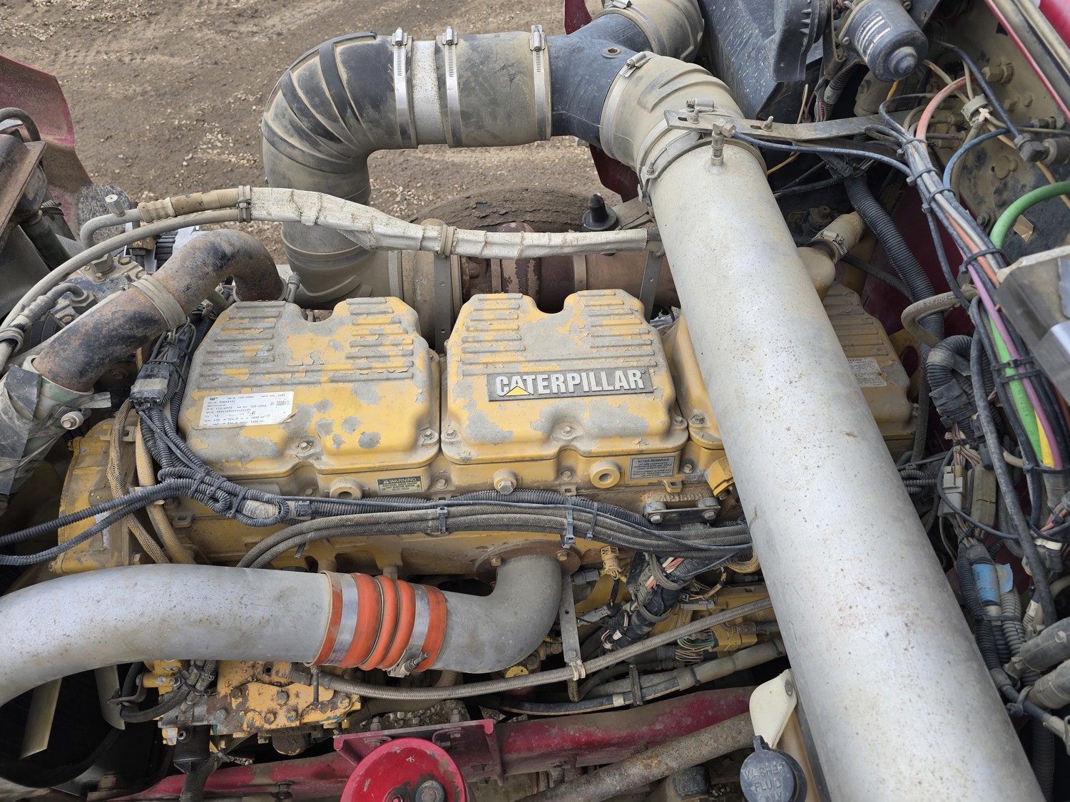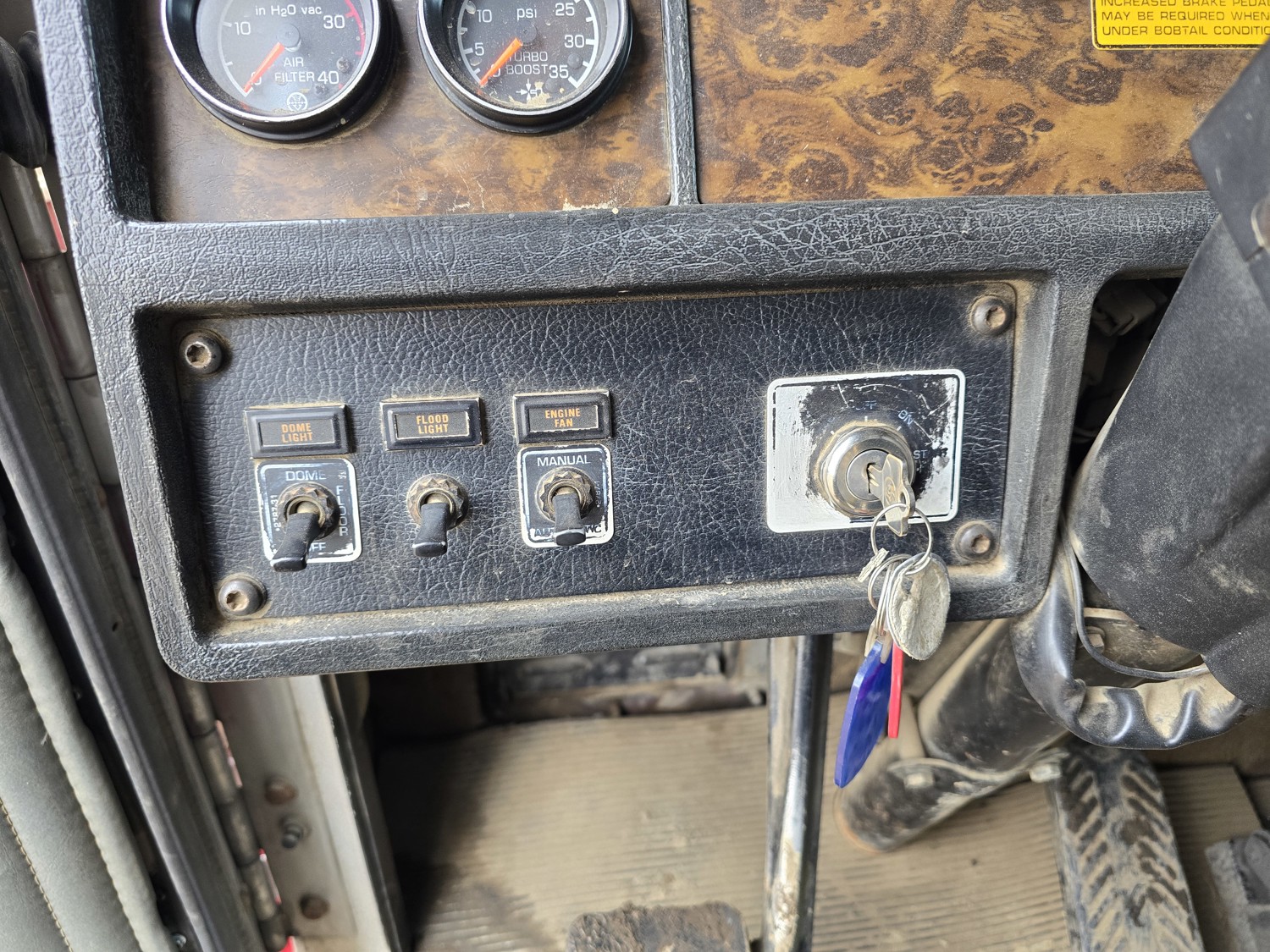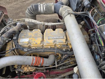 Caterpillar 3406 14.6 L 6 cylinder 435 HP diesel engine, Espar engine heater, engine brake, engine block heater, Eaton Fuller RTL016713A 13 speed manual transmission, A/C, cruise control, air ride driver seat, aluminum tool boxes, 15 ft box, beacons, electric tarp, PTO pump, plumbed for pup, rear pintail hitch,, air ride suspension, 12,000 lb front axle, 40,000 lb rear axles, diff lock, 4.33 ratio, all aluminum wheels, 11R24.5 tires