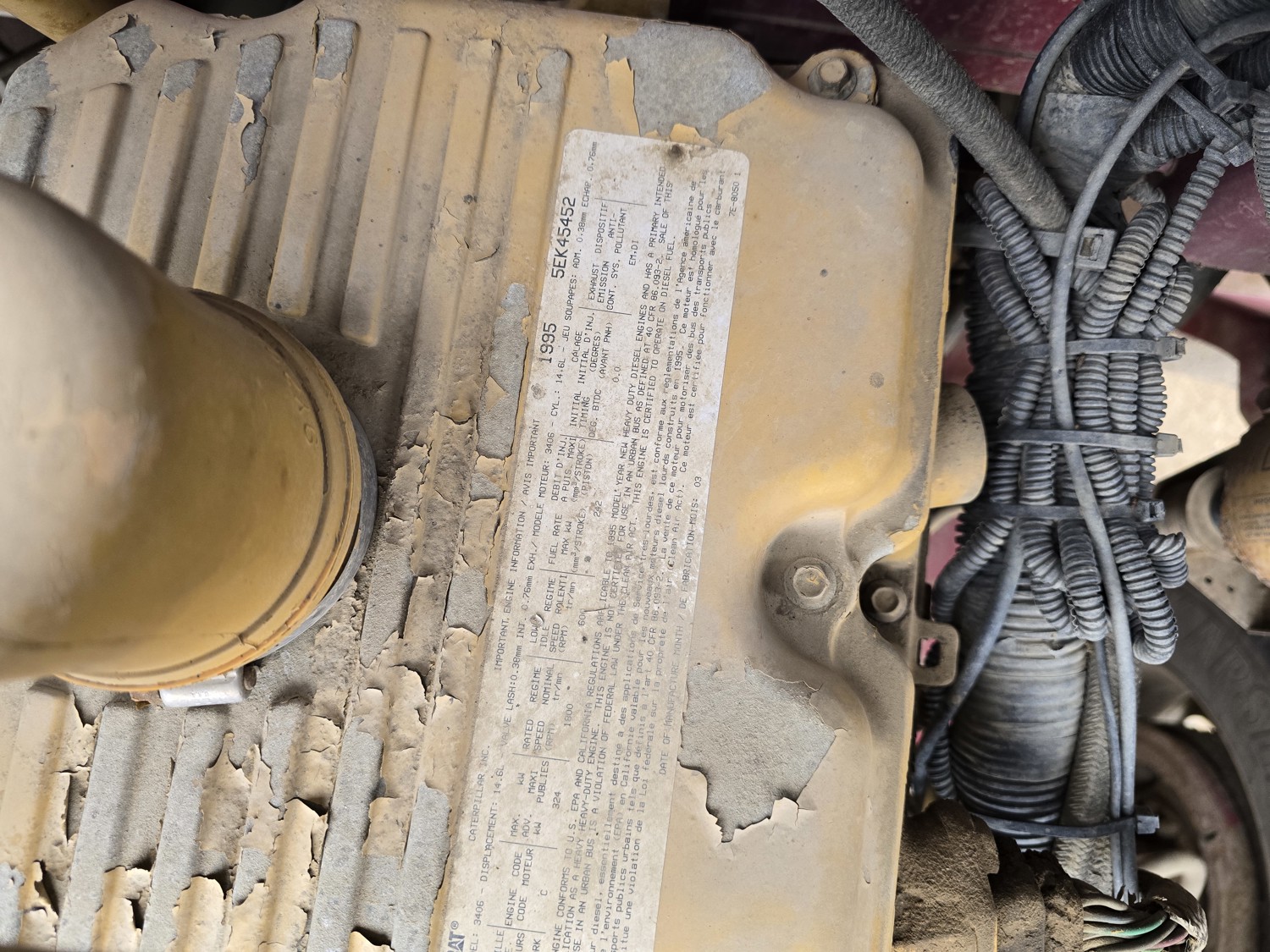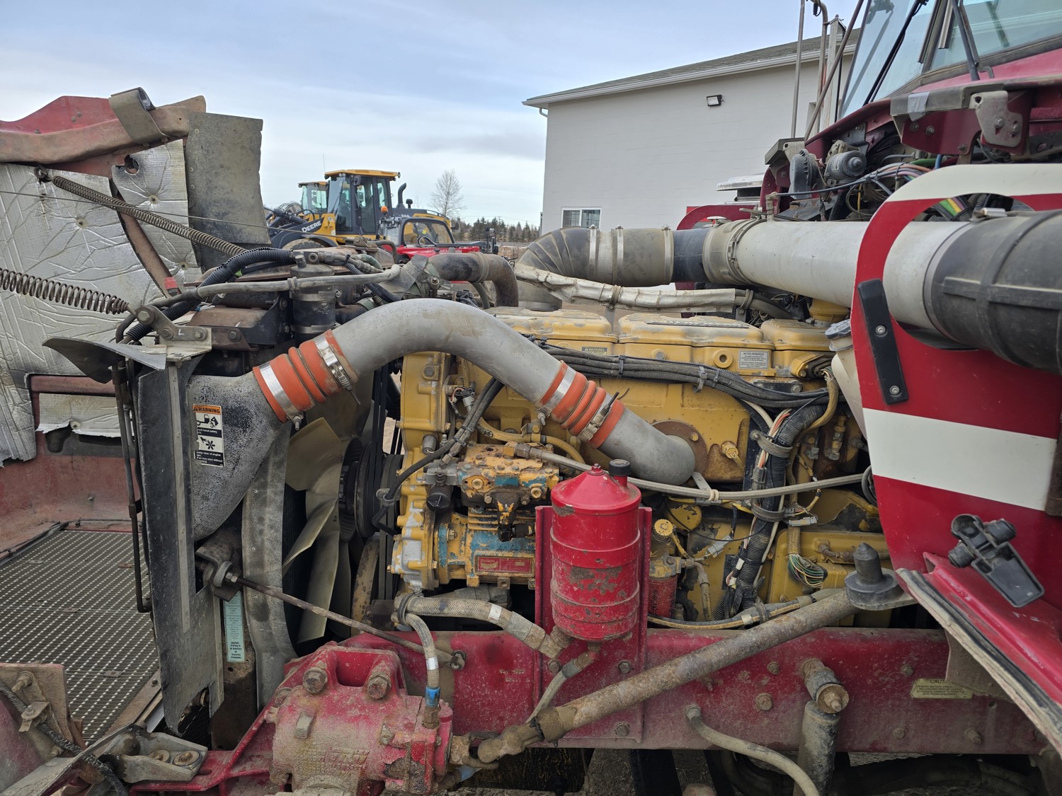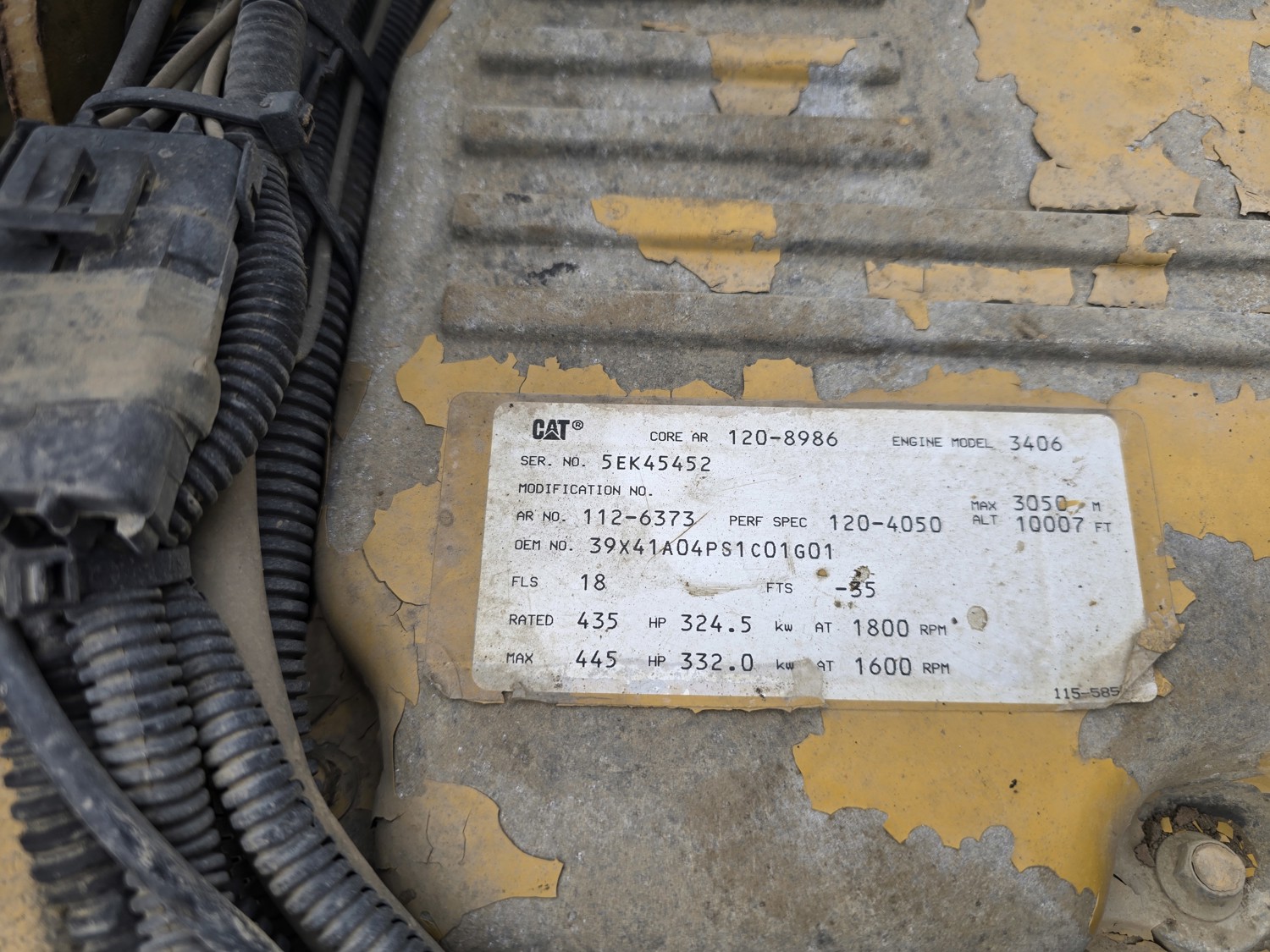 Caterpillar 3406 14.6 L 6 cylinder 435 HP diesel engine, Espar engine heater, engine brake, engine block heater, Eaton Fuller RTL016713A 13 speed manual transmission, A/C, cruise control, air ride driver seat, aluminum tool boxes, 15 ft box, beacons, electric tarp, PTO pump, plumbed for pup, rear pintail hitch,, air ride suspension, 12,000 lb front axle, 40,000 lb rear axles, diff lock, 4.33 ratio, all aluminum wheels, 11R24.5 tires