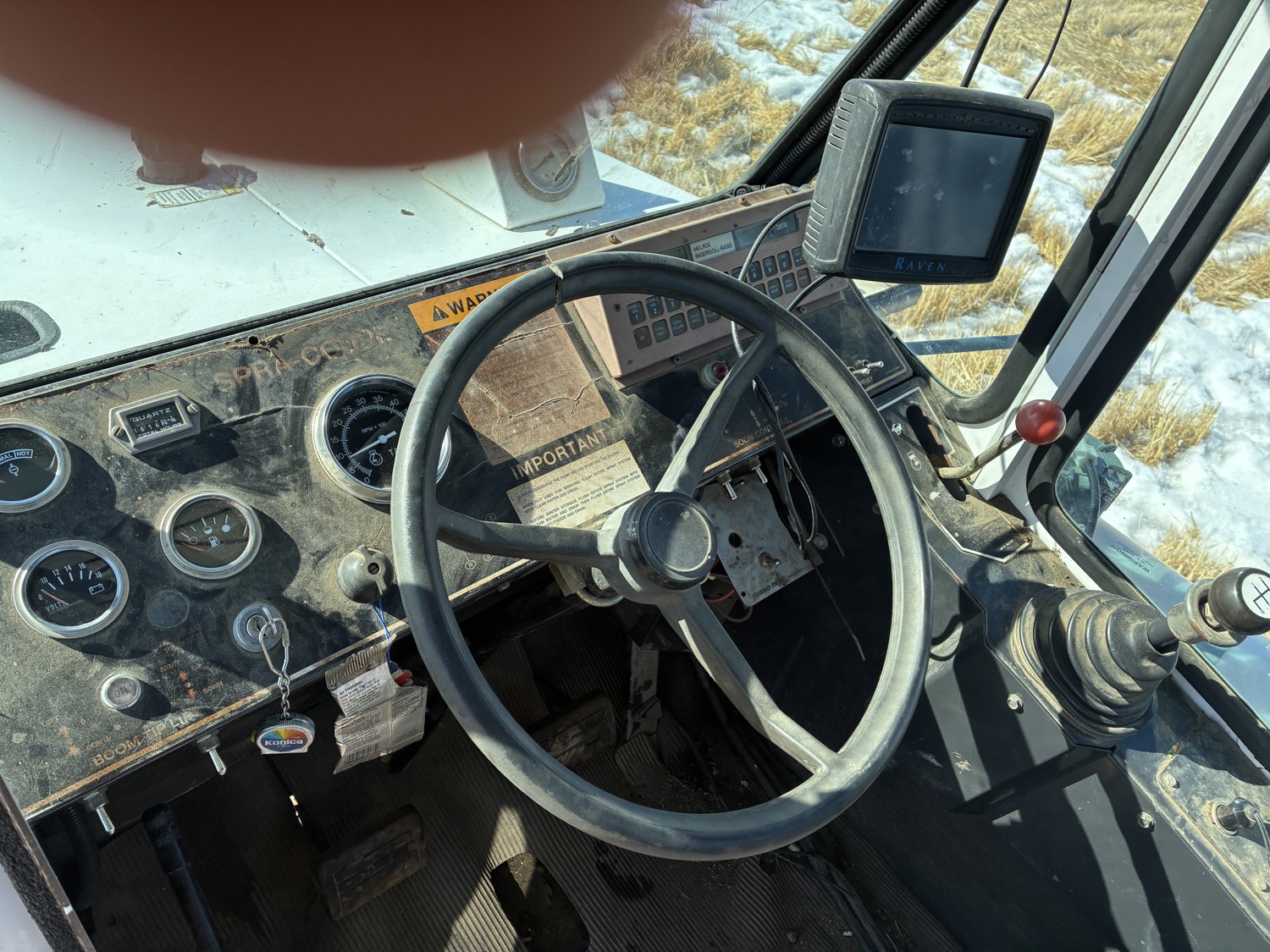 200 Imp gallon poly tank, 2 nozzle bodies, foam markers, Raven GPS Cruise II Monitor, new battery, 4 speed transmission, light bar on roof for night spraying, 1 new drive tire, comes with 2 new drive tires not installed, 10.5/80-18 rear tires, 6.00-16 front tires