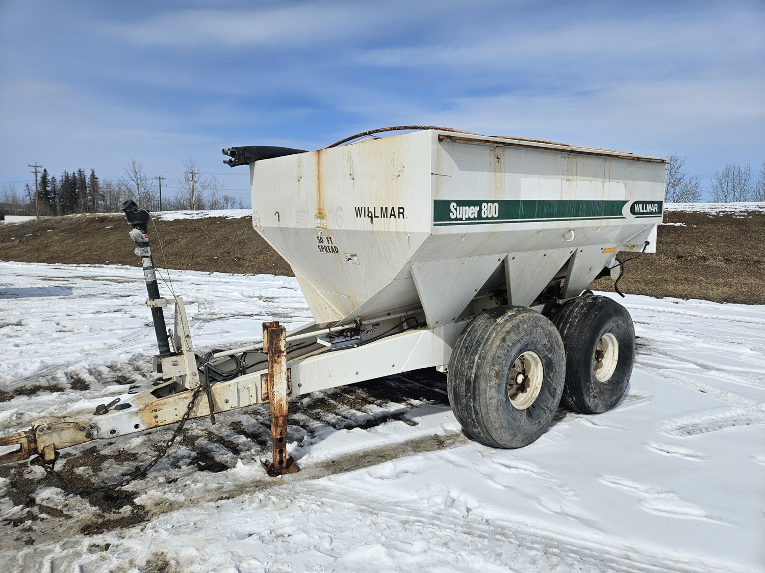 540 PTO, 50 ft spread width, double spinners, roll tarp, 19-16.5 tires