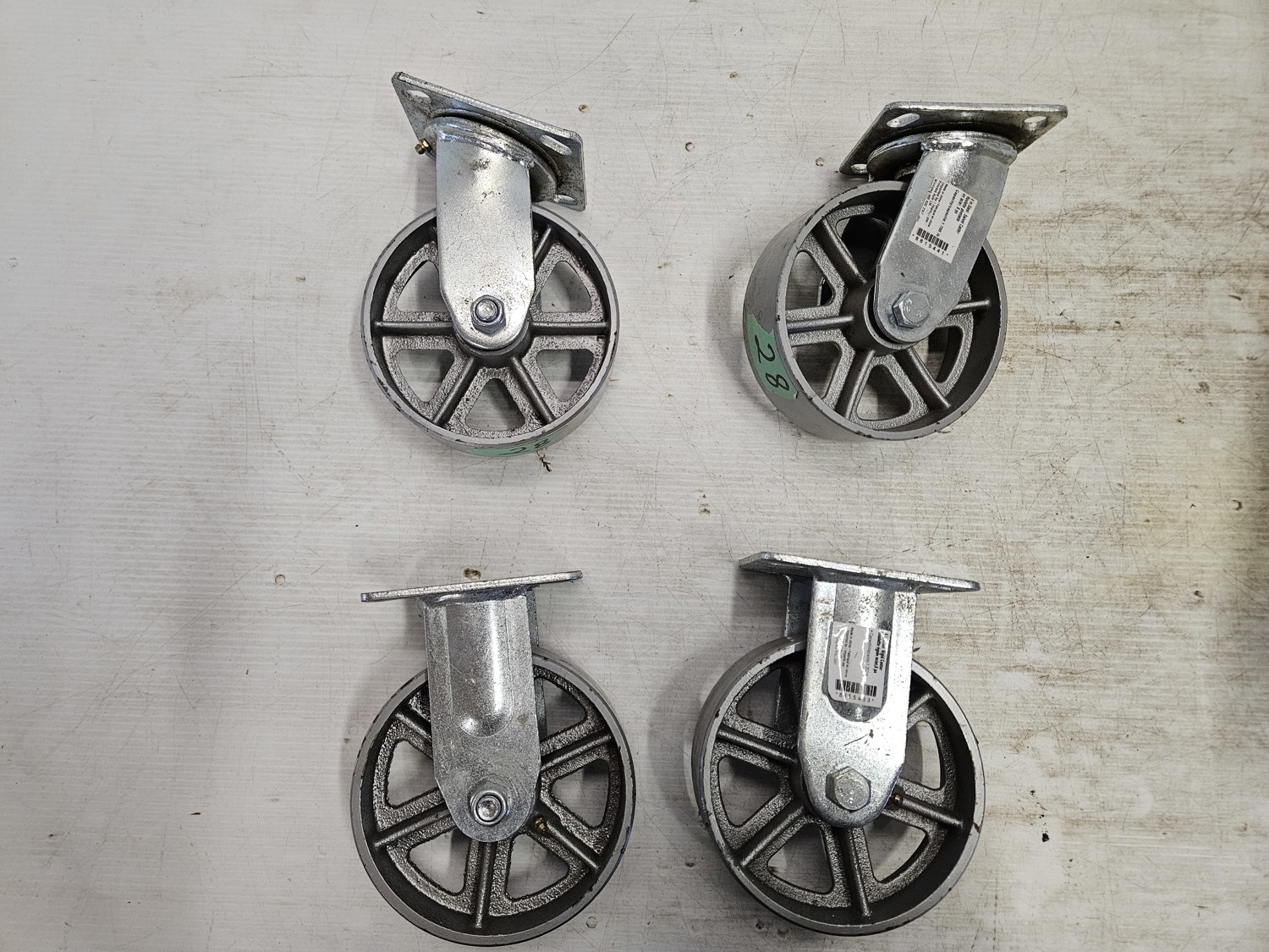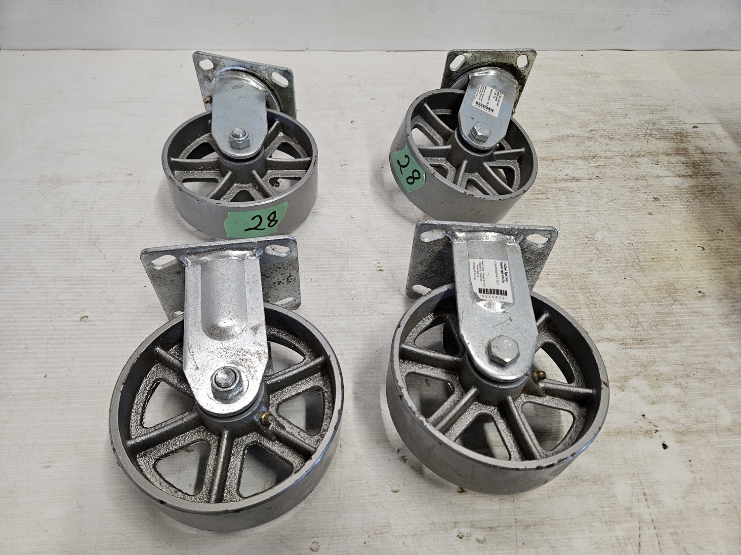 4 Cast Wheels 6 Inch, Qty of (2) Swivels, Qty of (2) Solids