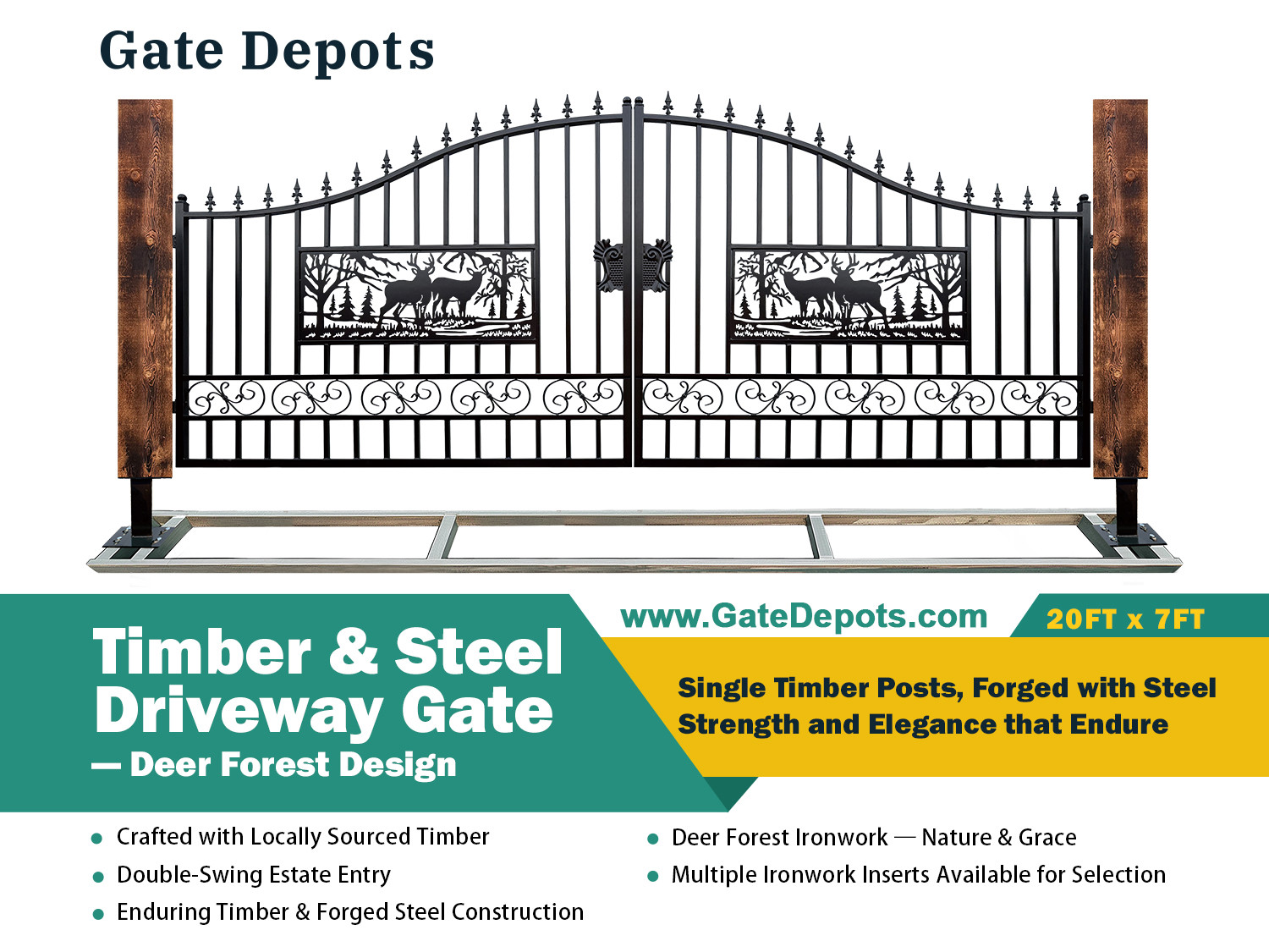 Single Timber Steel Driveway Gate (Unused)