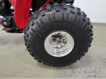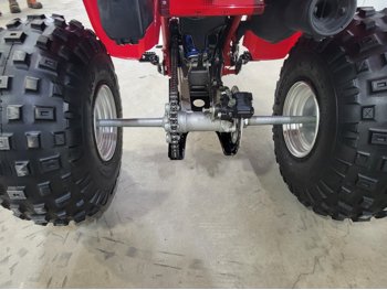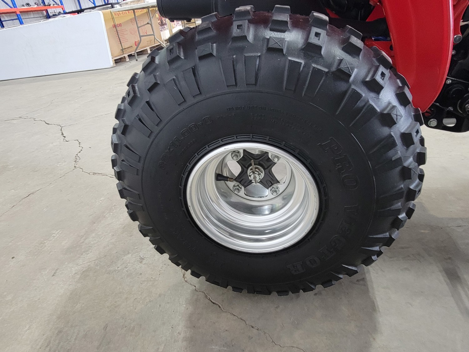 200 cc 4 stroke gas engine, 5 speed manual transmission, kick start, 23.5x8.00-11 front tire, 22x11.00-8 rear tires