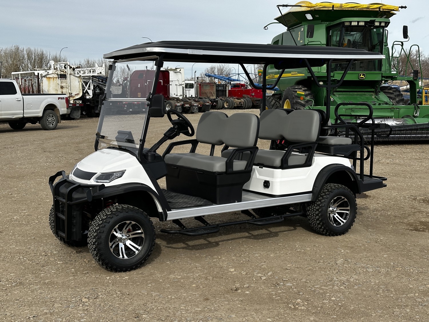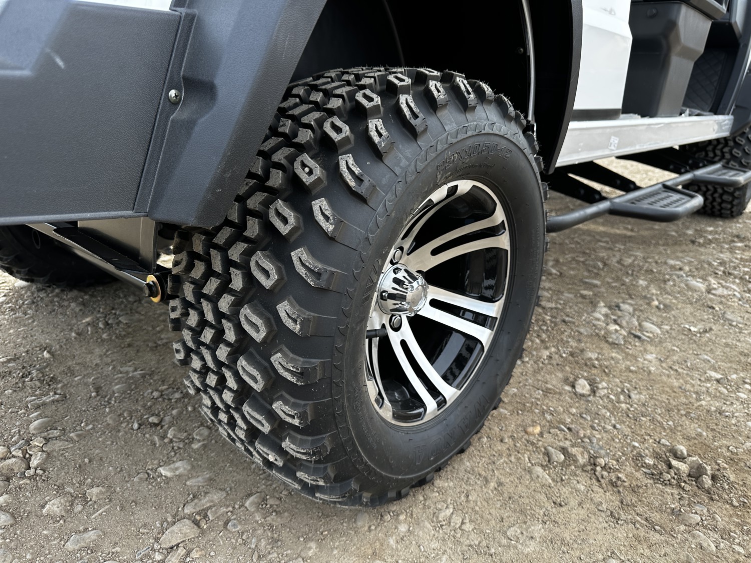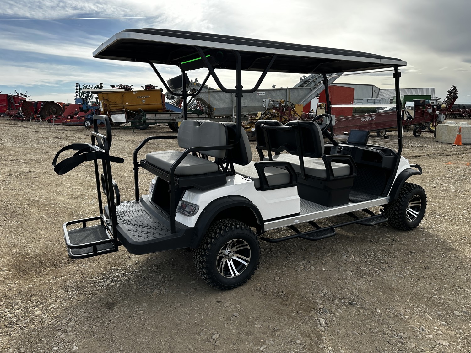 6 passengers, canopy, windshield, reverse, rear cargo, charger, Bluetooth speaker, lighting, steps, 33X10.50-12 tires