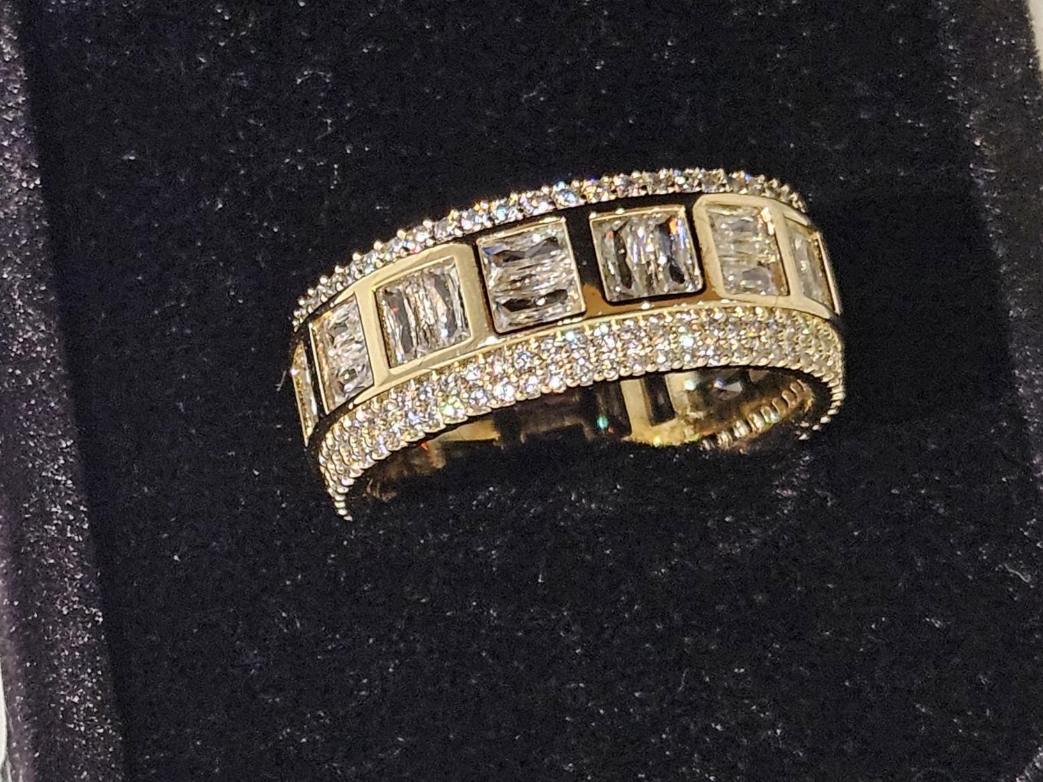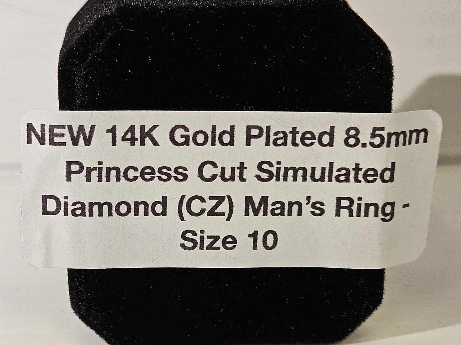 7091 Smartlife 14K Gold Plated 8.5 mm Princess Cut Simulated Diamond (CZ) Man's Ring - Size 10 (Unused)