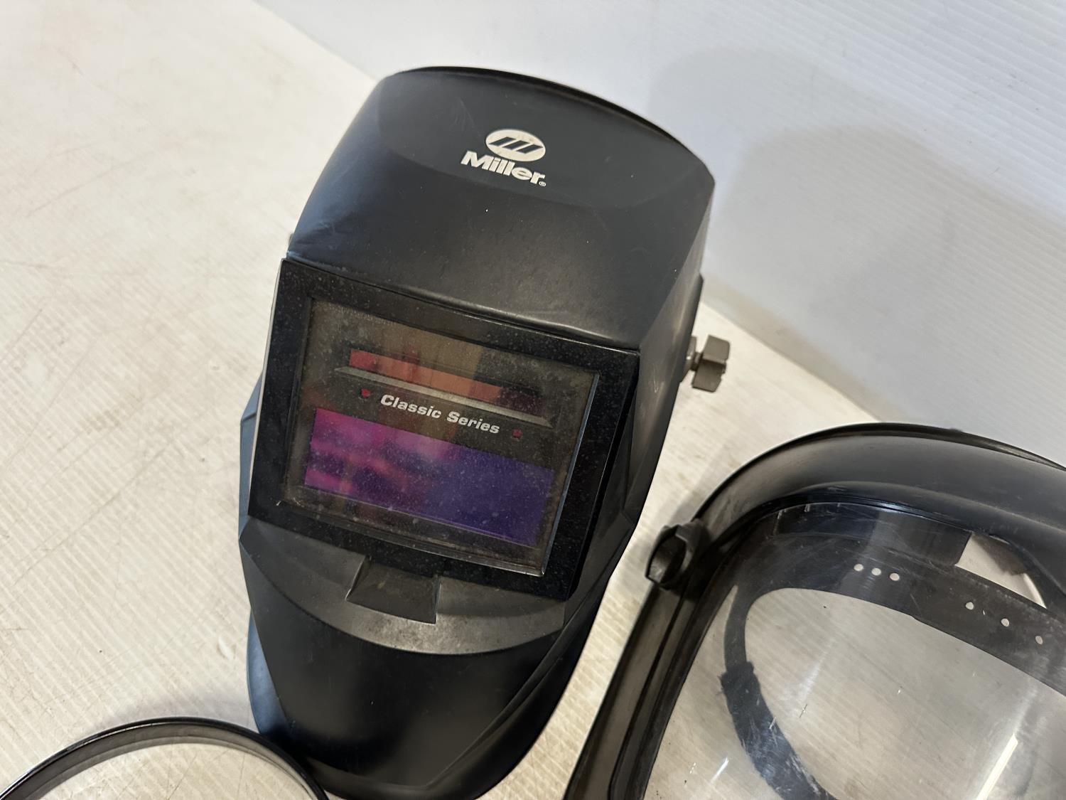 ear muffs, face shield, welding helmet