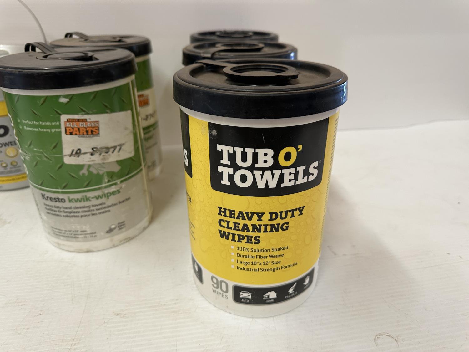 shop towels, Tub-O' Towels, LPS hand cleaner, Gojo scrubbing wipes, Stoko hand cleaning towels