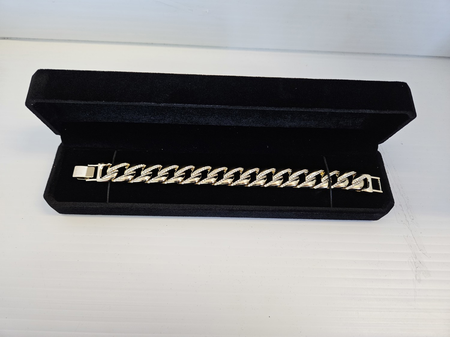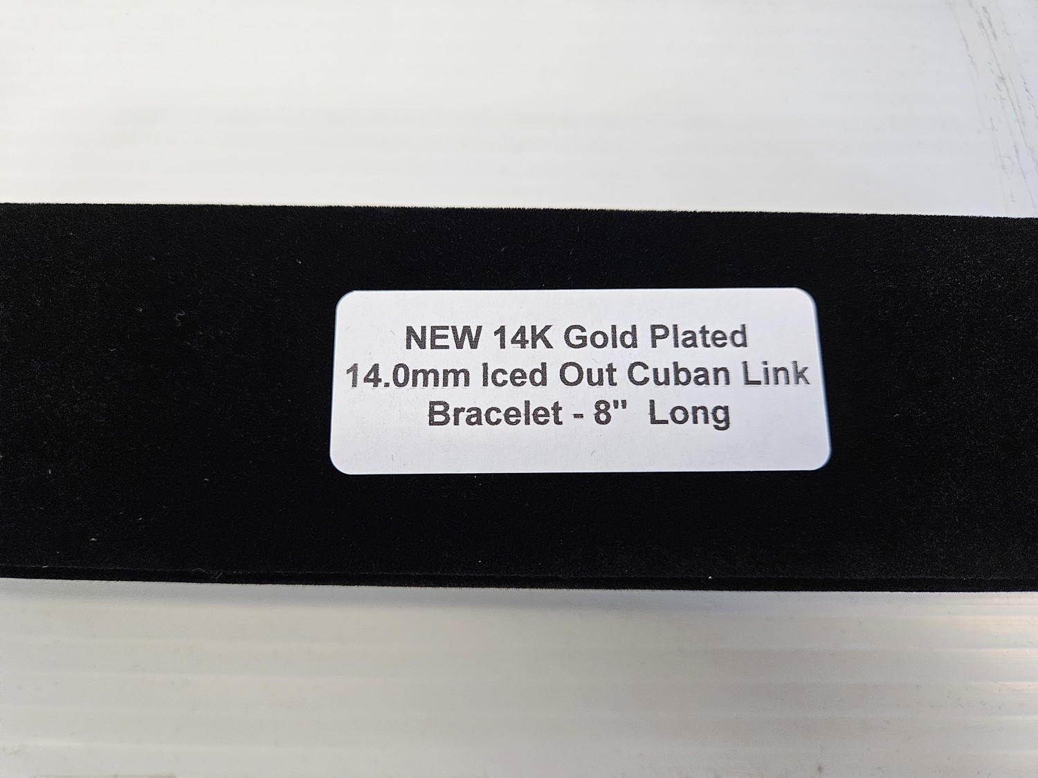 7060 14K Gold Plated 14 mm Iced Out Cuban Link Bracelet