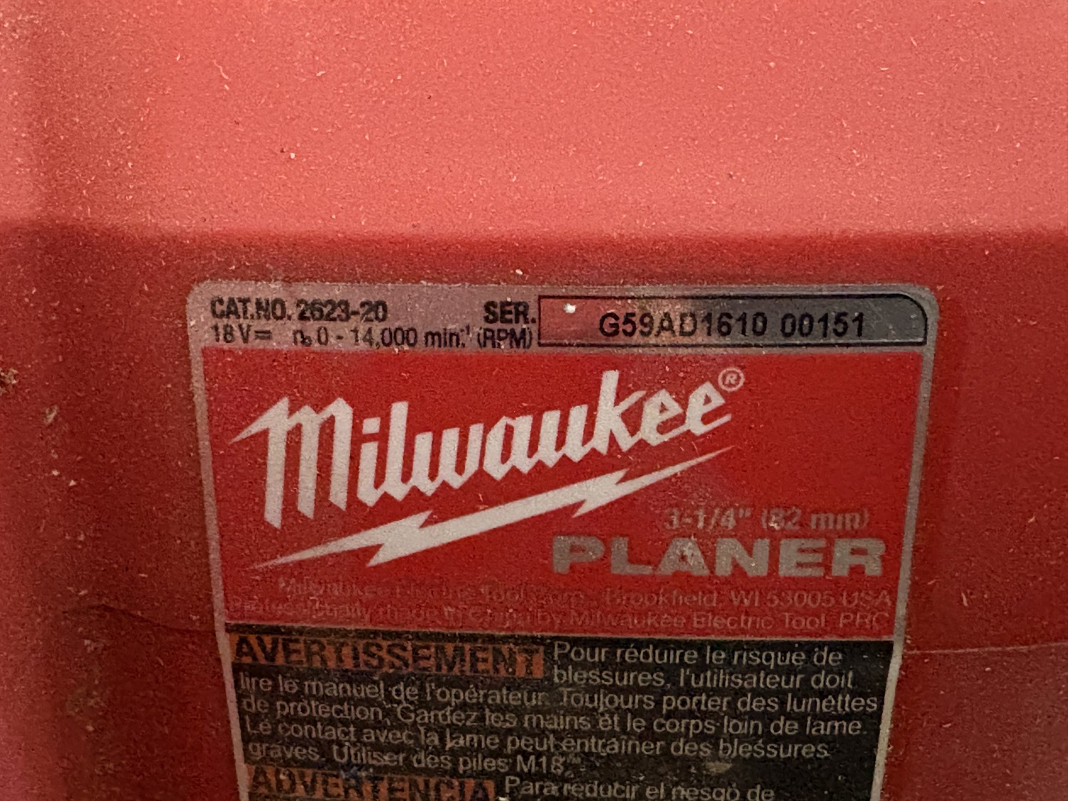 7279 Milwaukee 2623-20 3-1/4 Inch Planer