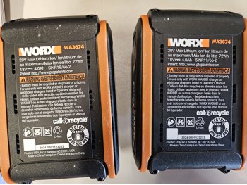 7378 Worx WG779 40V Cordless Lawnmower W/ (2) 20V Batterys
