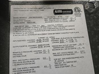 7238 Daikin 30,000 BTU Furnace