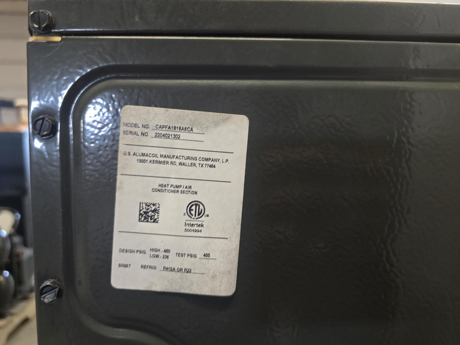 7134 Qty of (2) U.S. Alumacoil CAPFA1818A6CA Evaporator Coils (Unused)