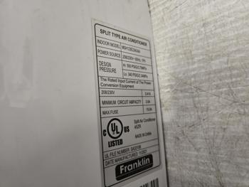 7108 Franklin MSH123E23AXAA Split Type Indoor A/C Unit