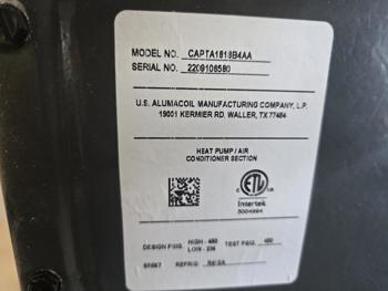 7143 Qty of (2) Alumacoil Manufacturing Heat Pump/AC Sections (Unused)