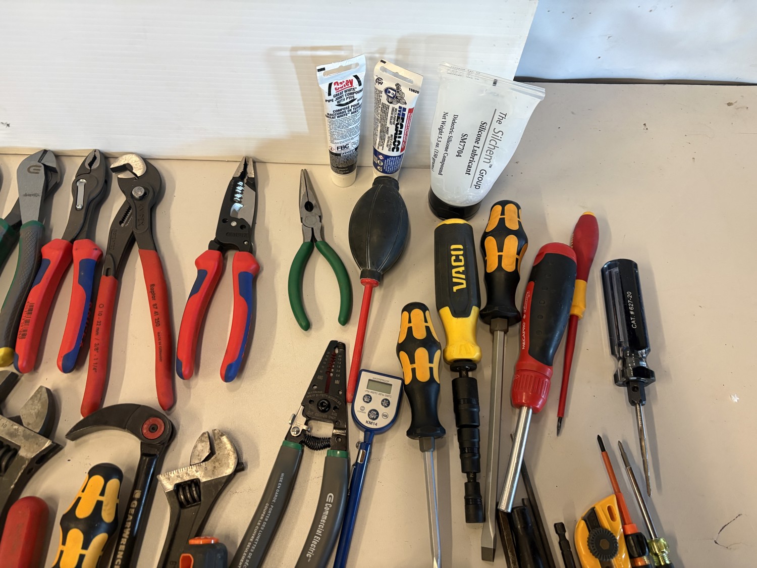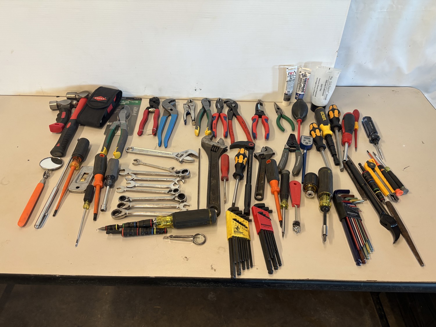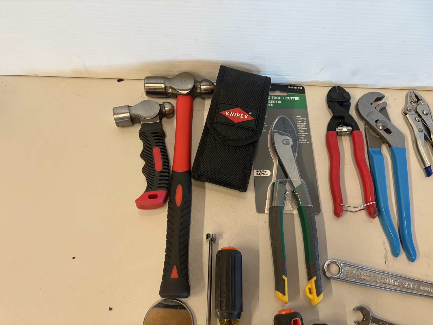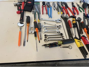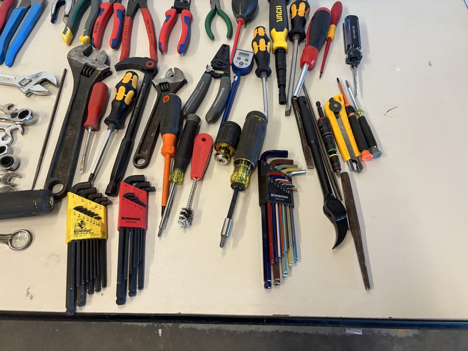 Hammers, cutters, plyers, vice grips, screwdrivers, wrenches, allen keys
