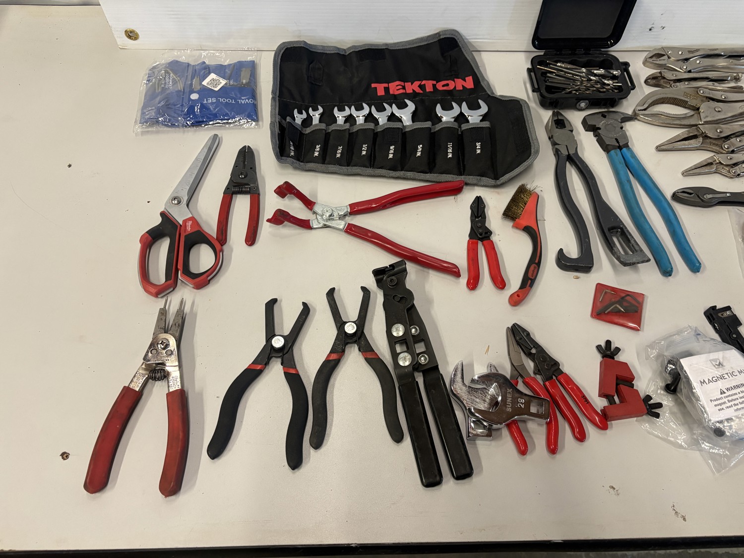 Tekto 8 piece imperial wrenches, cutters, plyers, vice grips, gator clips, drill bits, specialty tools