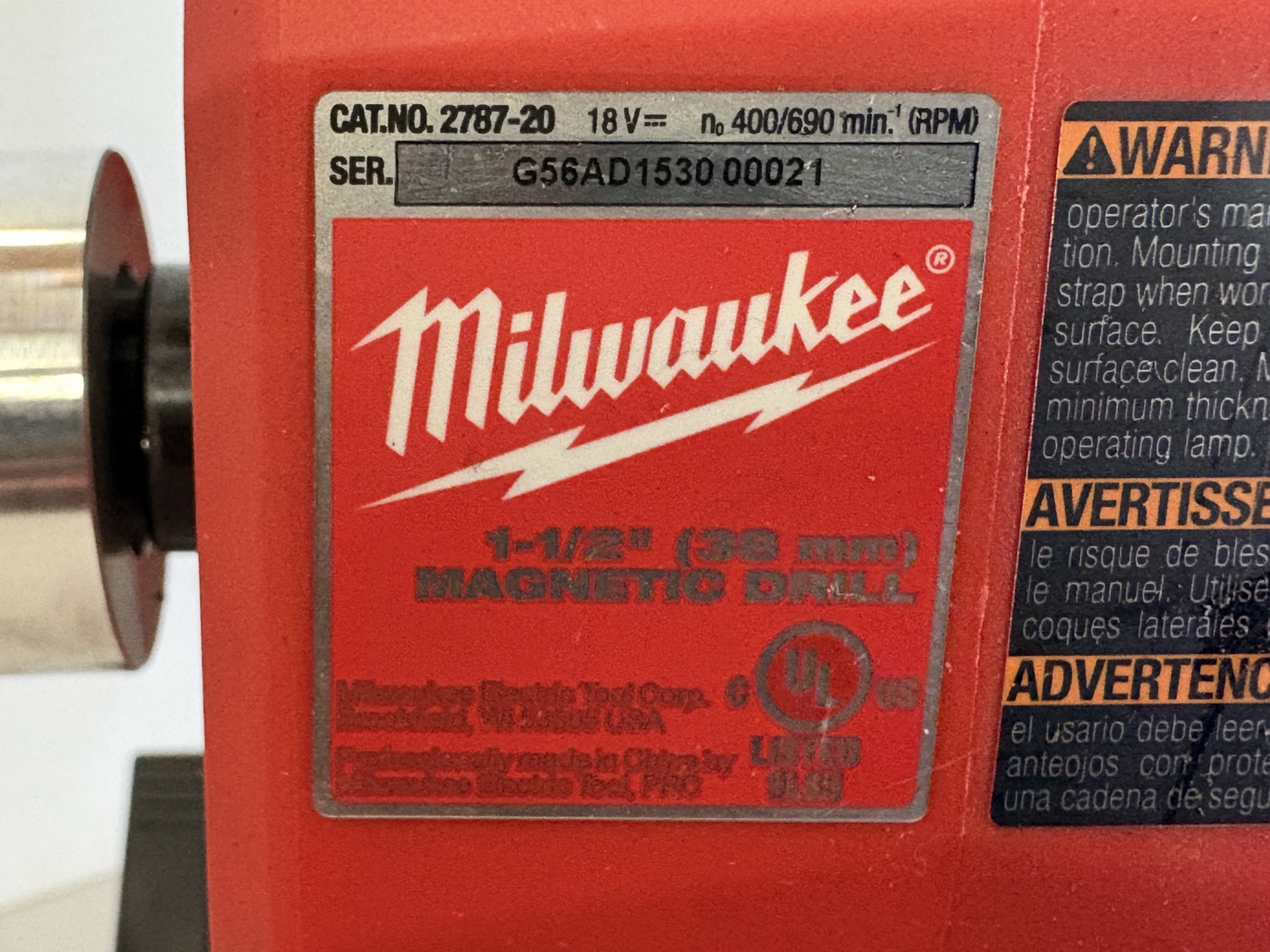 7292 Milwaukee 2787-20 M18 Fuel 1-1/2 Inch Magnetic Drill
