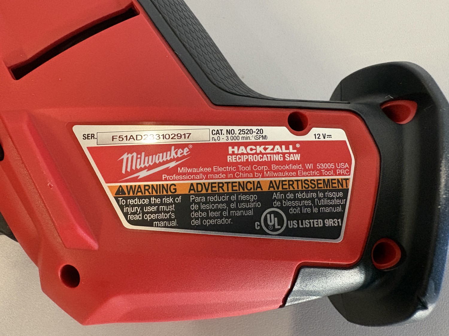 7265 Milwaukee 2520-20 M12 Fuel Hackzall Riciprocating Saw