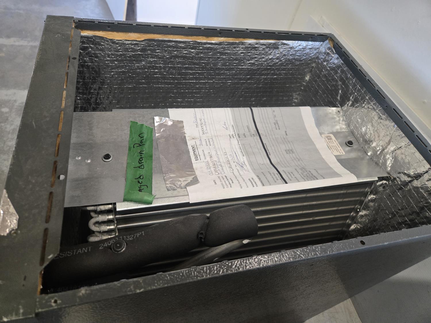 (1) Model CAPFA3022B6CA damage drain pan, (1) Model CAPFA2422B6CA inoperable