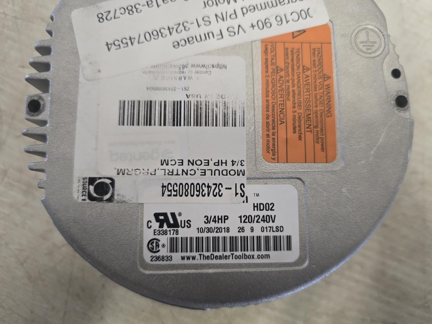 (1) 3/4 HP, part number: S1-32436080554, (1) 3/4 HP, part number S1-32436080287