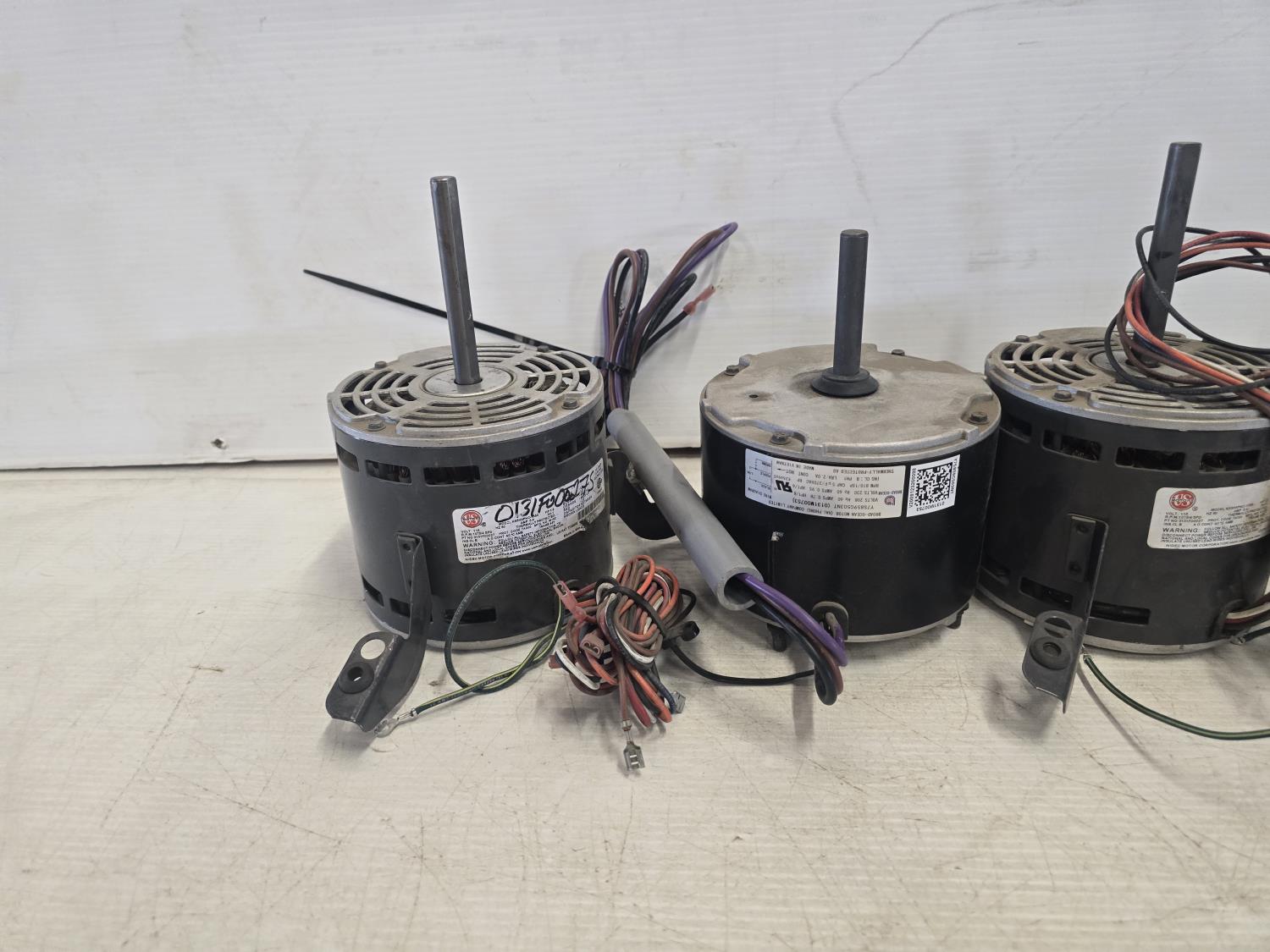 (1) Broad-Ocean Motor Co. 1/8 HP, single phase, 208V, (2) US Motors 1/3 HP, single phase, 115V, (1) US Motors 1/2 HP, single phase, 115V