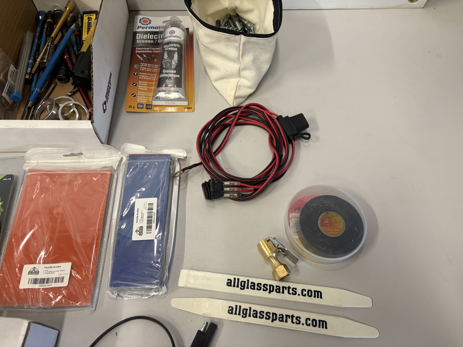 Handle scales, air pump hose, toggle switch