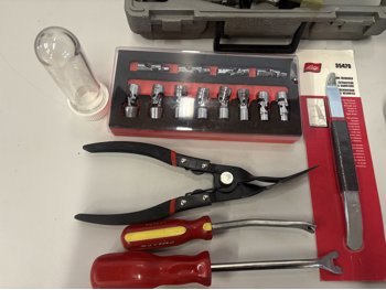 Vacuum pump, pro point imperial sockets, screwdrivers, picks, plastic scrapers