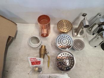 Drains, shower heads, shutoff valve, copper T fitting