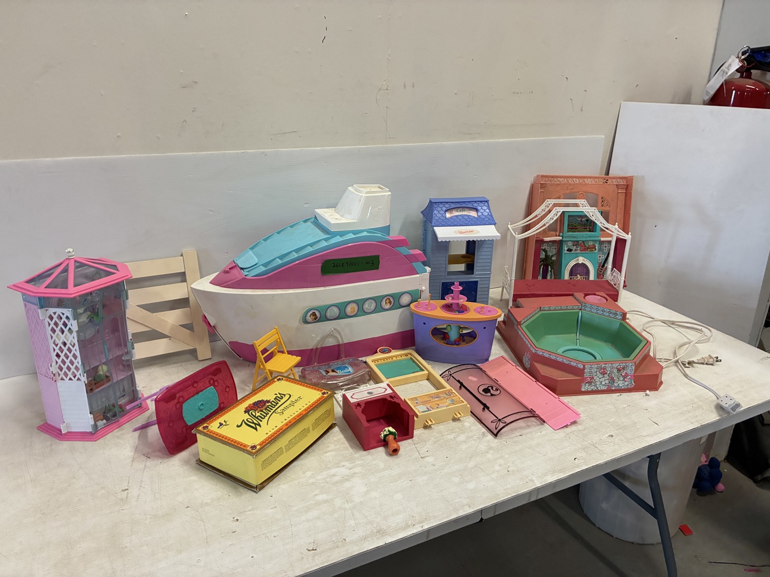 barbie cruise ship, pool, and other variety of hard plastic barbie accessories.