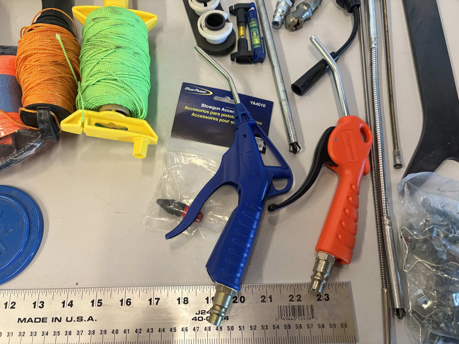 Air guns, string line, rulers, air fittings, pickup tools
