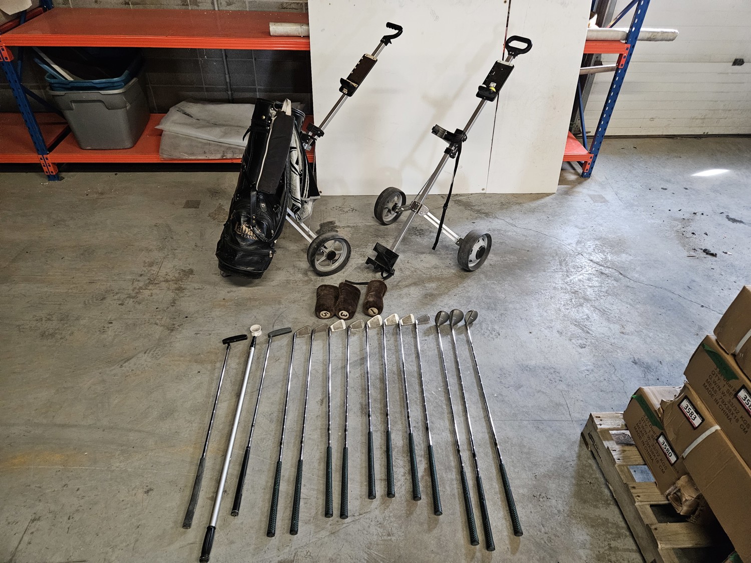 Qty of (1) Labatt Golf Club Bag (2) Golf Bag Carrier's (13) Golf Clubs