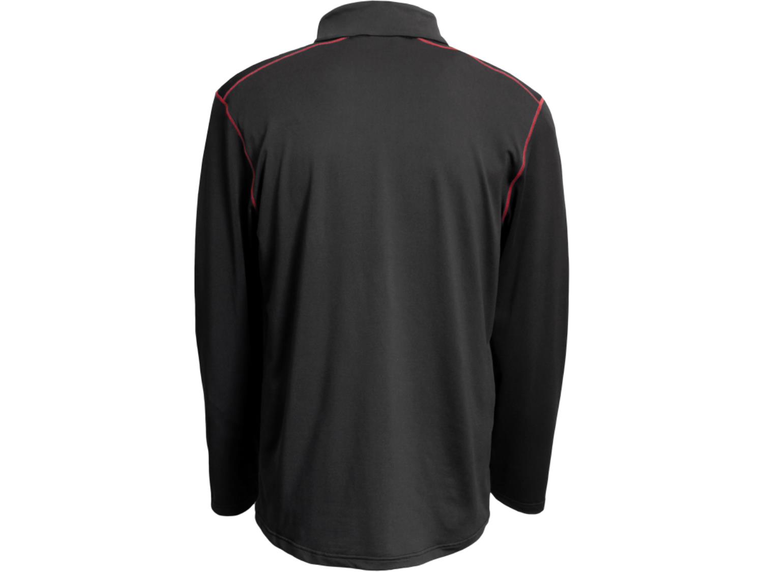 Style 810, 90% polyester, 10% spandex, breathable and moisture wicking, contrast stitching, 1/4 zipper, chin guard on main zipper, self-cuff and collar
