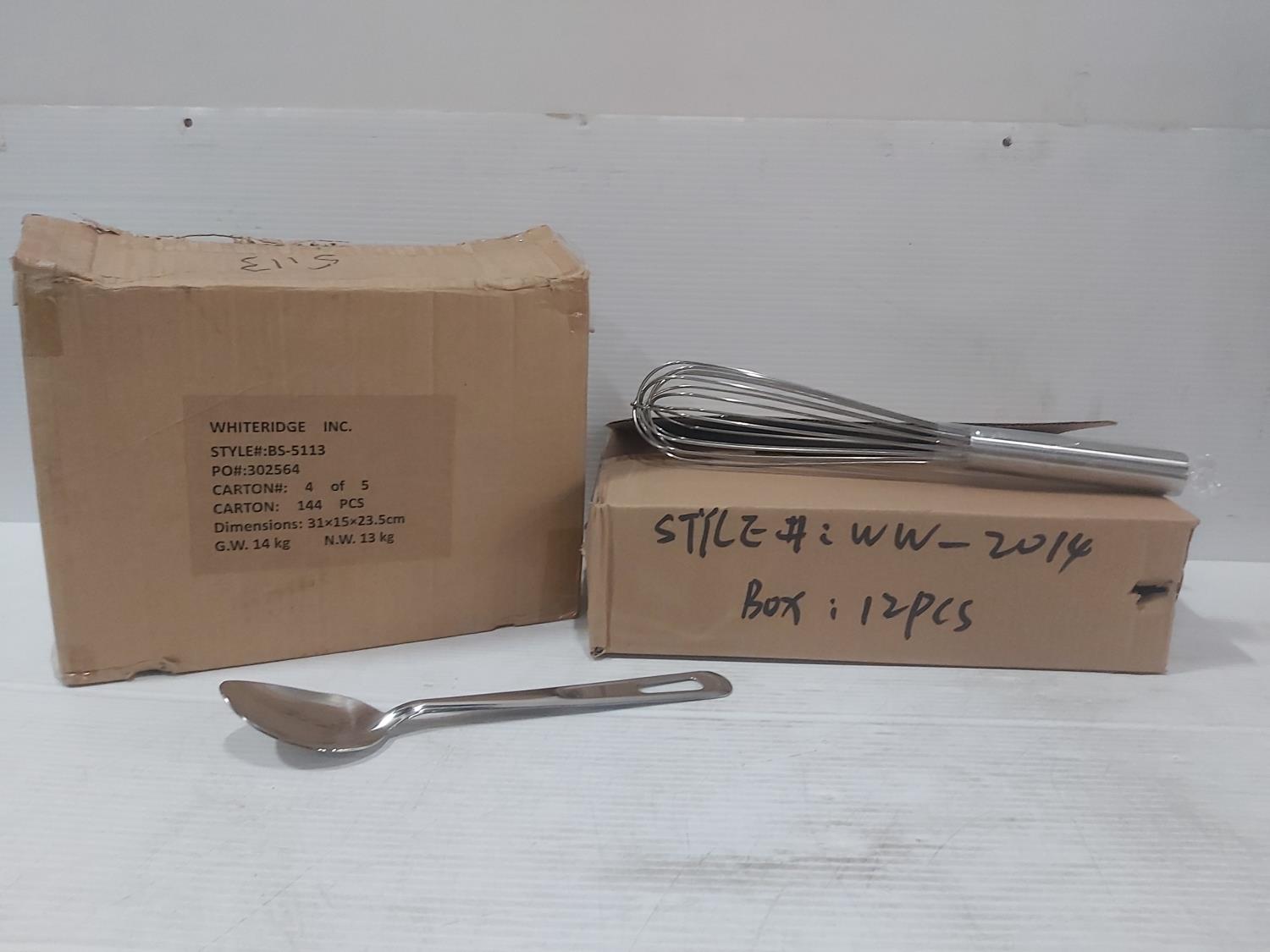 980 (144) 11 Inch Stainless Steel Serving Spoons & (12) 14 Inch Stainless Steel Whisk (Unused)