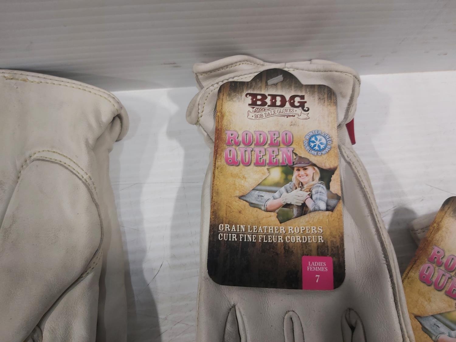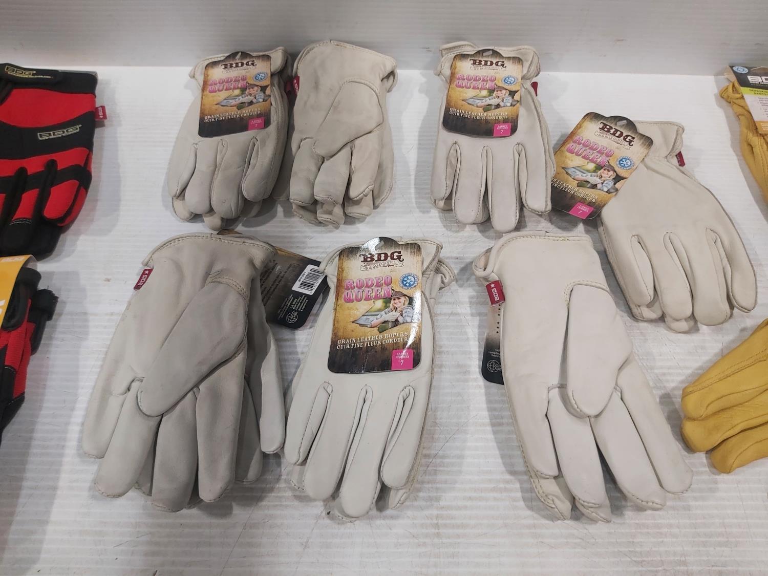 (6) pair of BDG Performance gloves, (7) pair of Rodeo Queen leather gloves size 7, (3) pair of BDG leather ladies gloves size 9