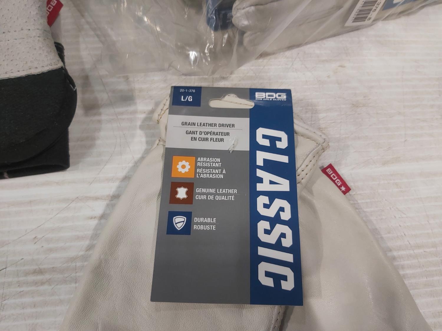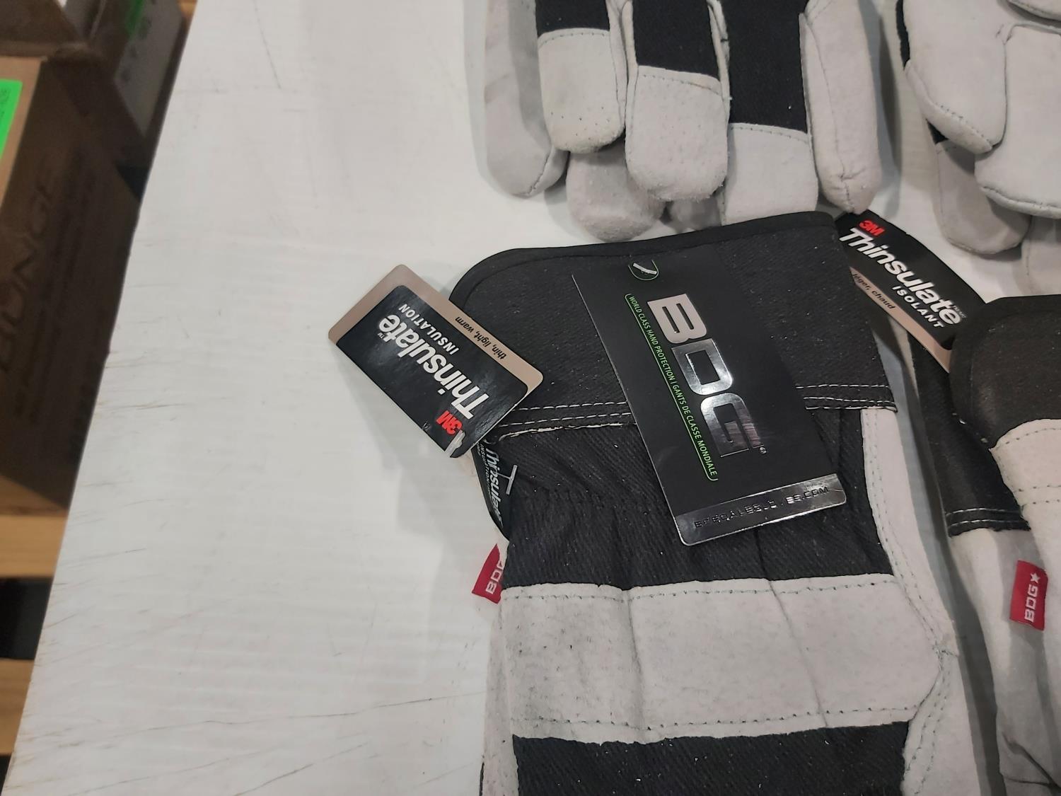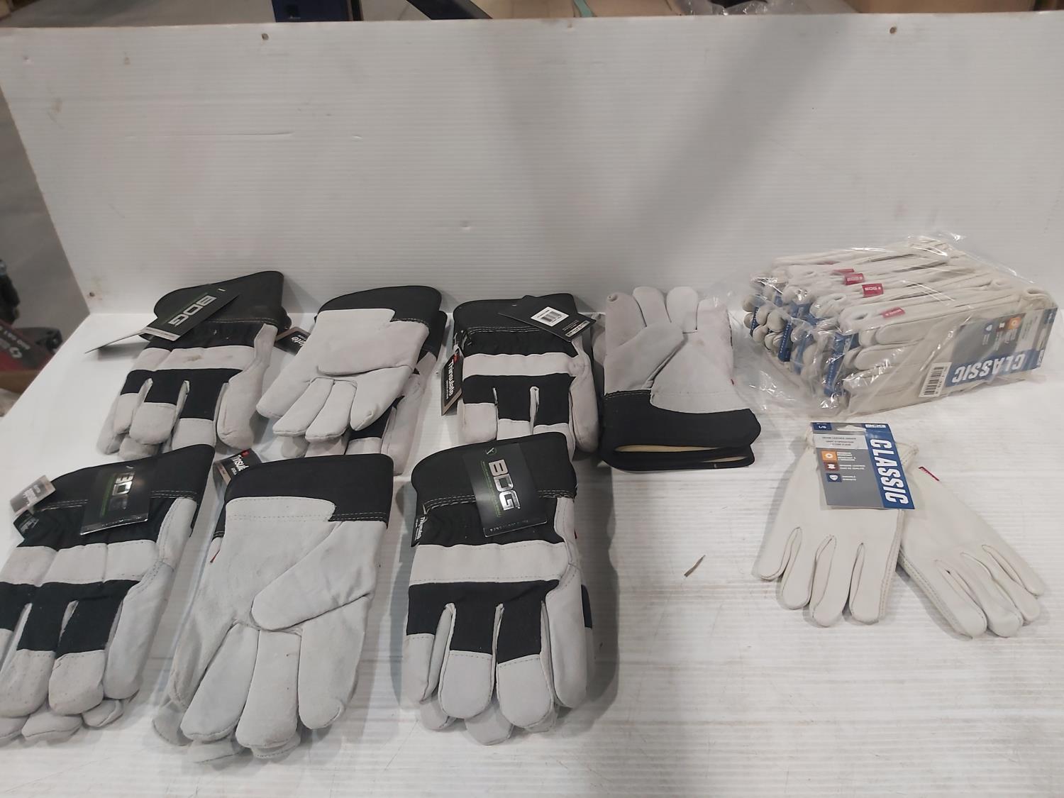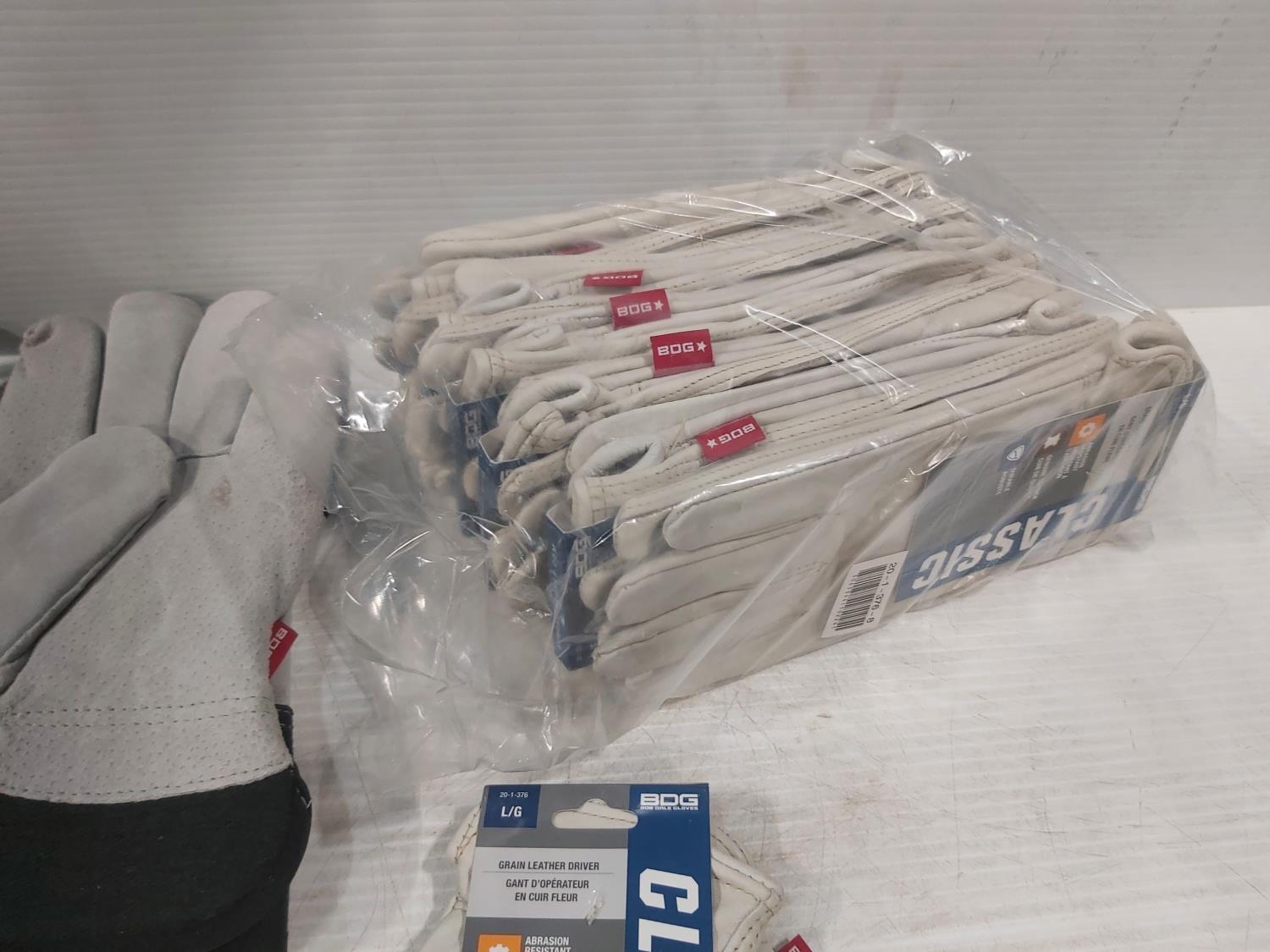 (7) pair of large Thinsulate work gloves, (12) pair of large leather driver's gloves