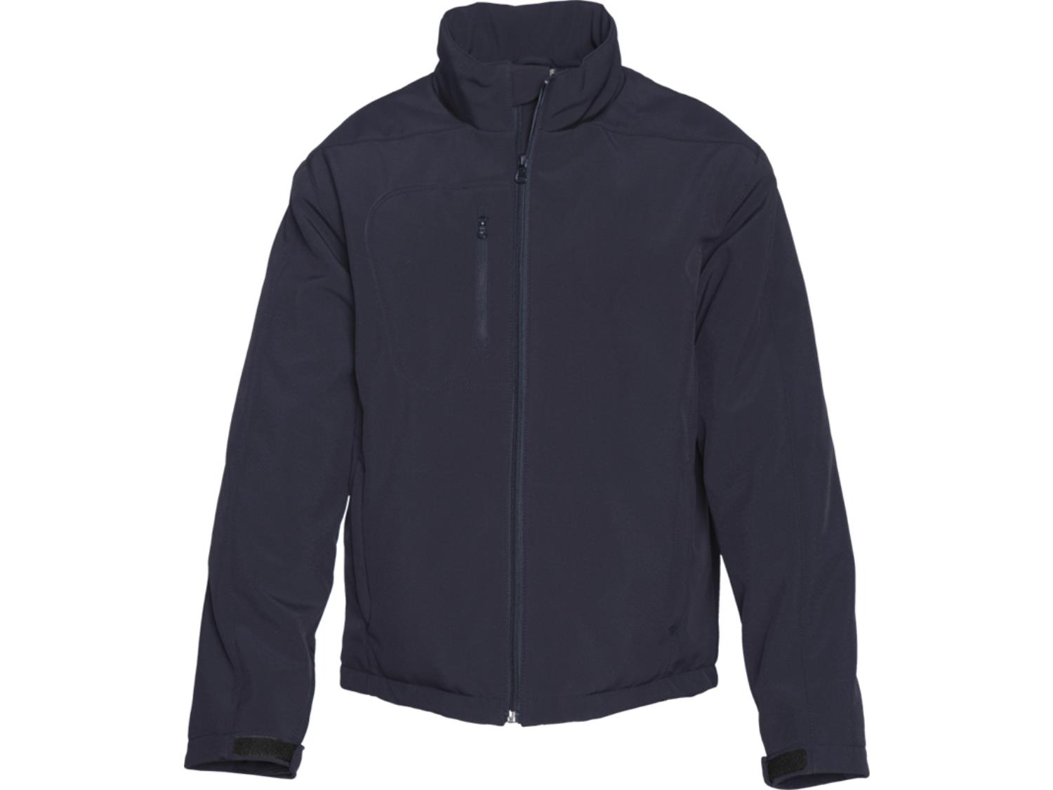 Style 931, insulated 3 layer bonded soft shell, 96% polyester, 4& spandex, thermal tech insulation, wind & water resistant, right chest pocket, 2 side pockets, drop tail with waist draw string, adjustable Velcro cuff