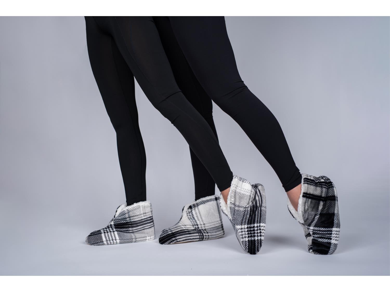 1181 (20) Small/Medium Charcoal Plaid Classic Sherpa Comfy-Booties (Unused)