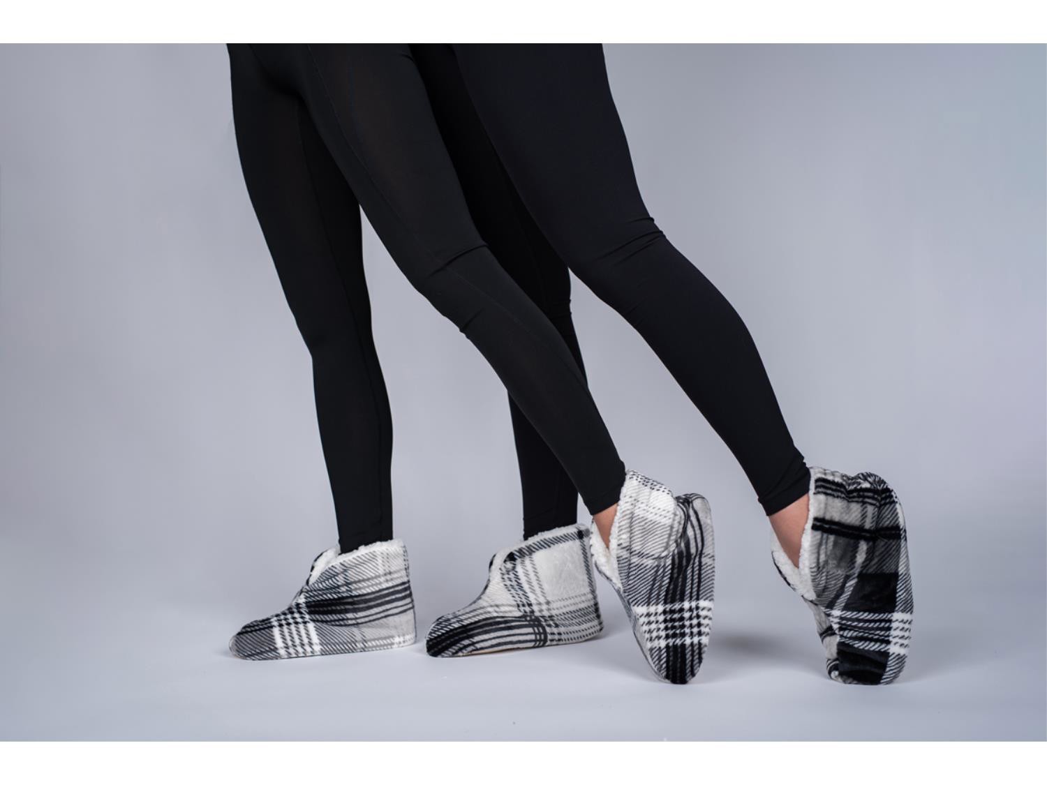 1185 (20) Small/Medium Charcoal Plaid Classic Sherpa Comfy-Booties (Unused)