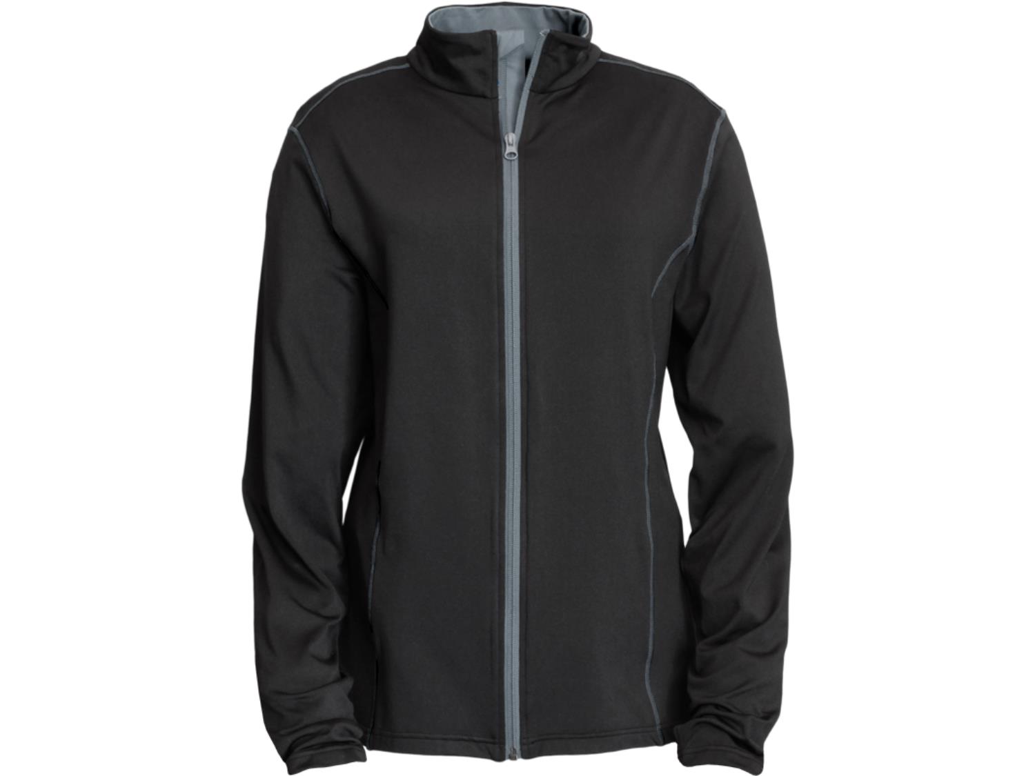 Style 812, 90% polyester, 10% spandex, breathable and moisture wicking, contrast stitching, full zipper, chin guard on main zipper, self-cuff and collar