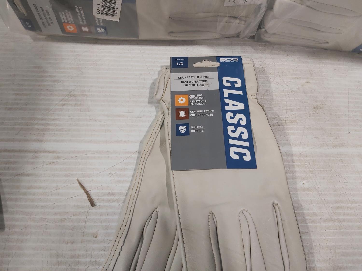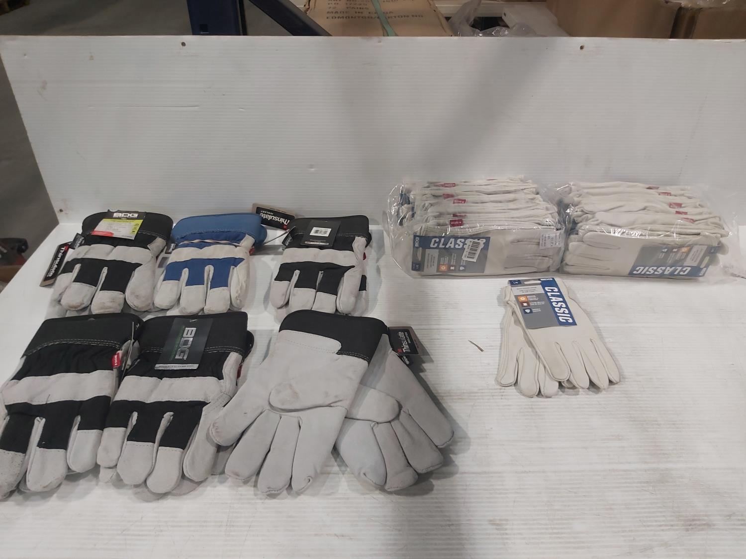 (6) pair of large Thinsulate work gloves, (24) pair of large leather driver's gloves