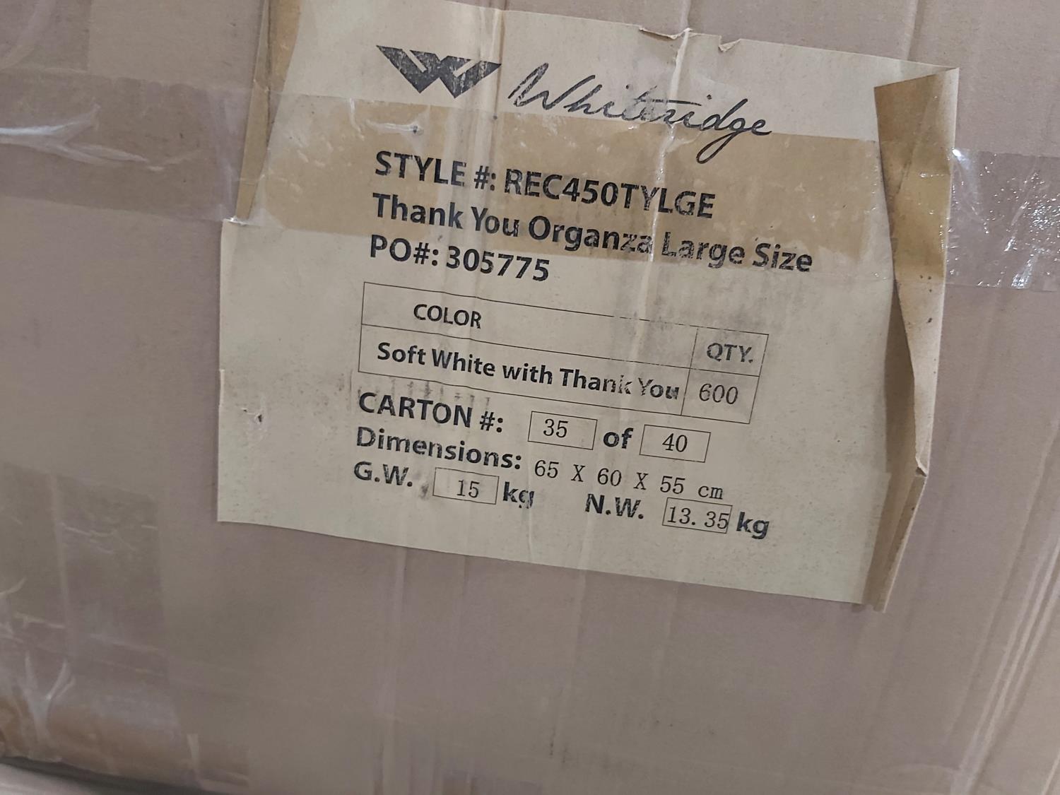 1130 (3600±) Standard Size Organza Bags (Unused)