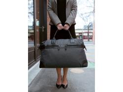 Stand out from the crowd with this chic timeless design. This executive travel bag is perfect for your next business trip or weekend away. 600D polyester, 1 inside zippered pocket, 3 outside zippered pockets for instant access, adjustable and removable padded shoulder strap, size 11.5” x 21.5” x 10”, capacity 41 liters (4 boxes of 10)