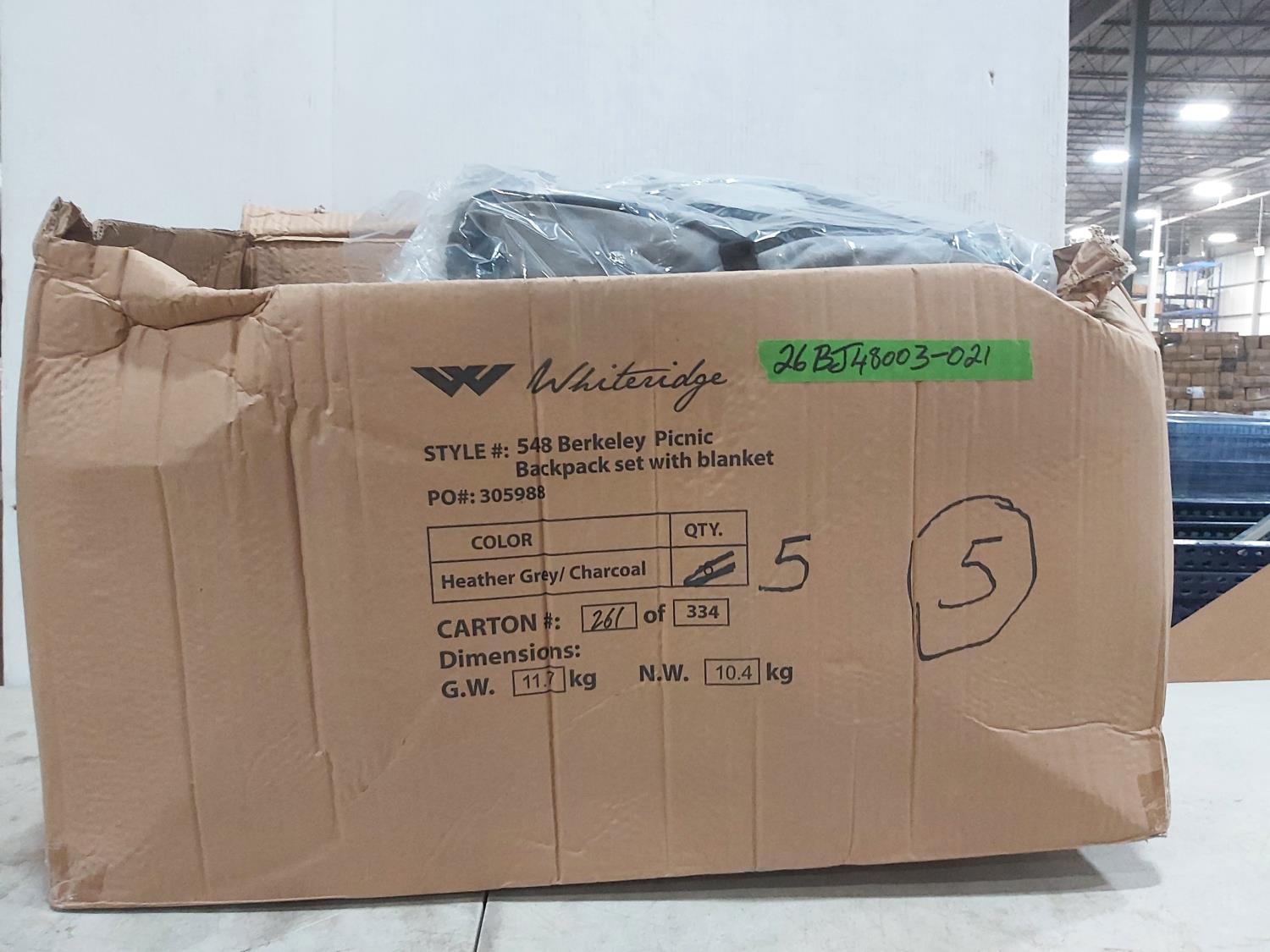 1204 (5) Berkeley Grey/ Charcoal Picnic Backpack w/ Cooler & Blanket (Unused)
