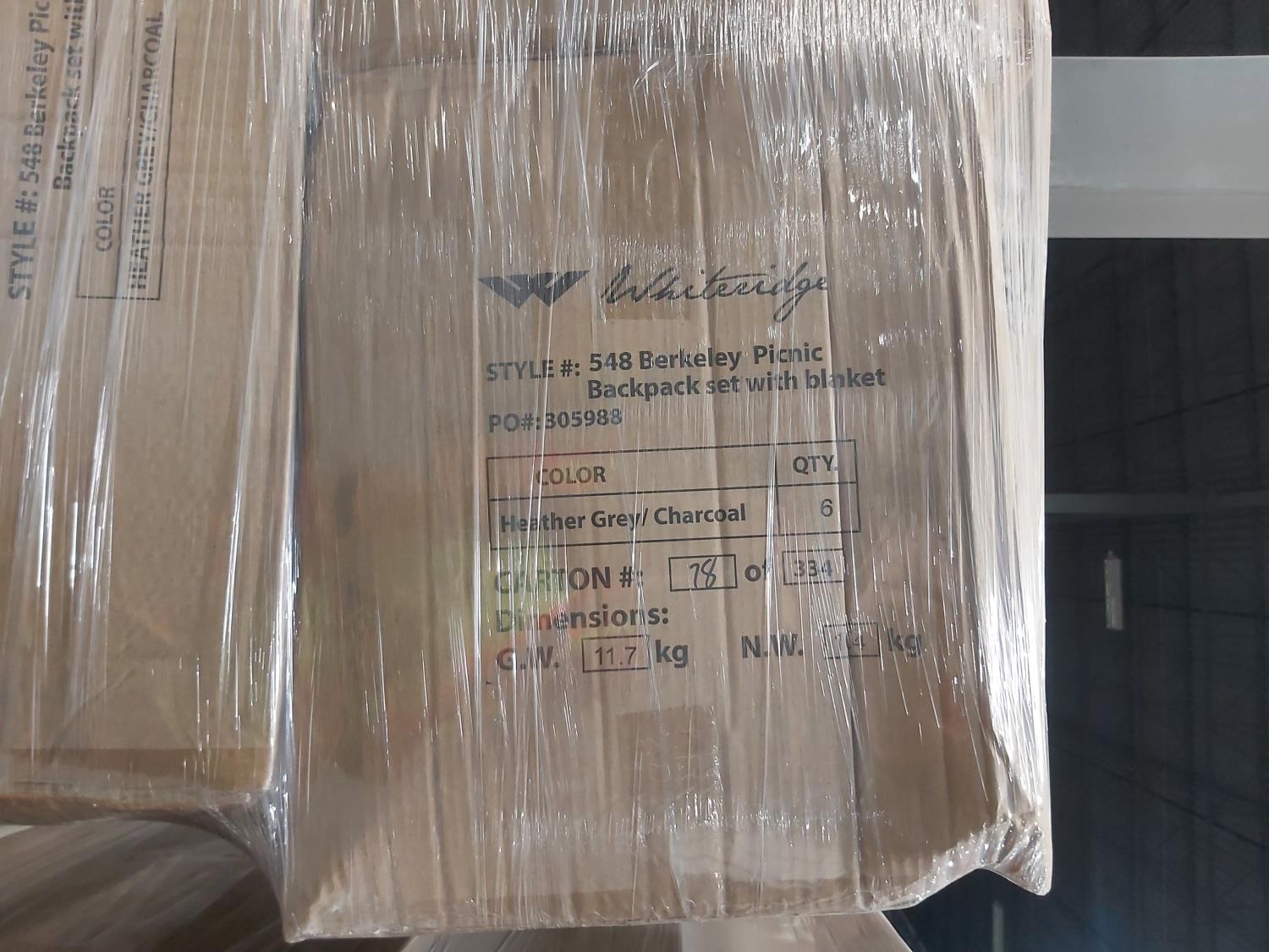1582 (6) Berkeley Grey/ Charcoal Picnic Backpack w/ Cooler & Blanket (Unused)