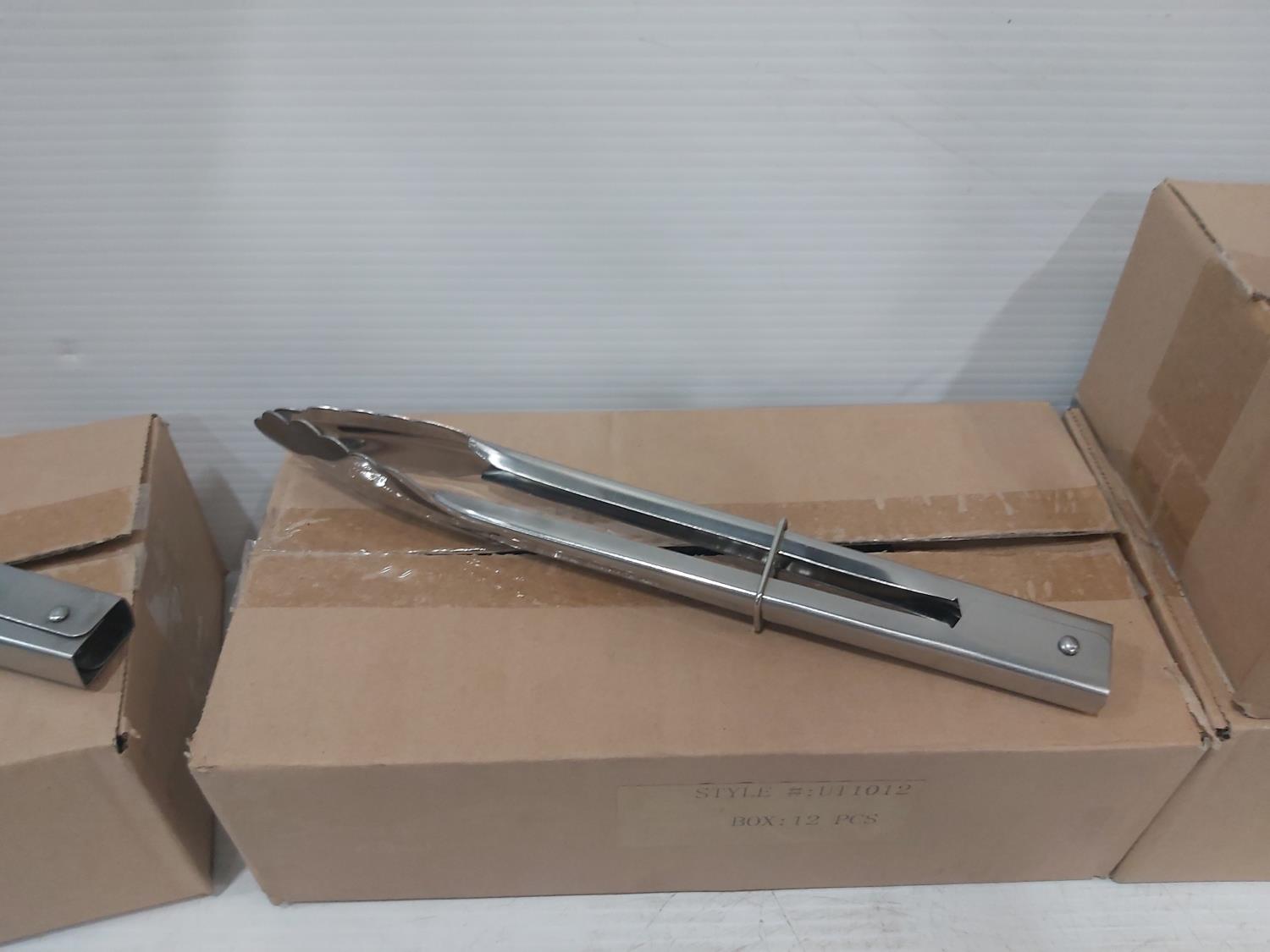 902 (60) 9 Inch (12) 12 Inch Stainless Steel Tongs (Unused)