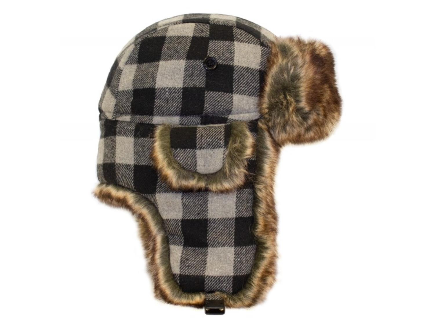 1438 (67) Fur Grey Plaid Trapper Hats (Unused)