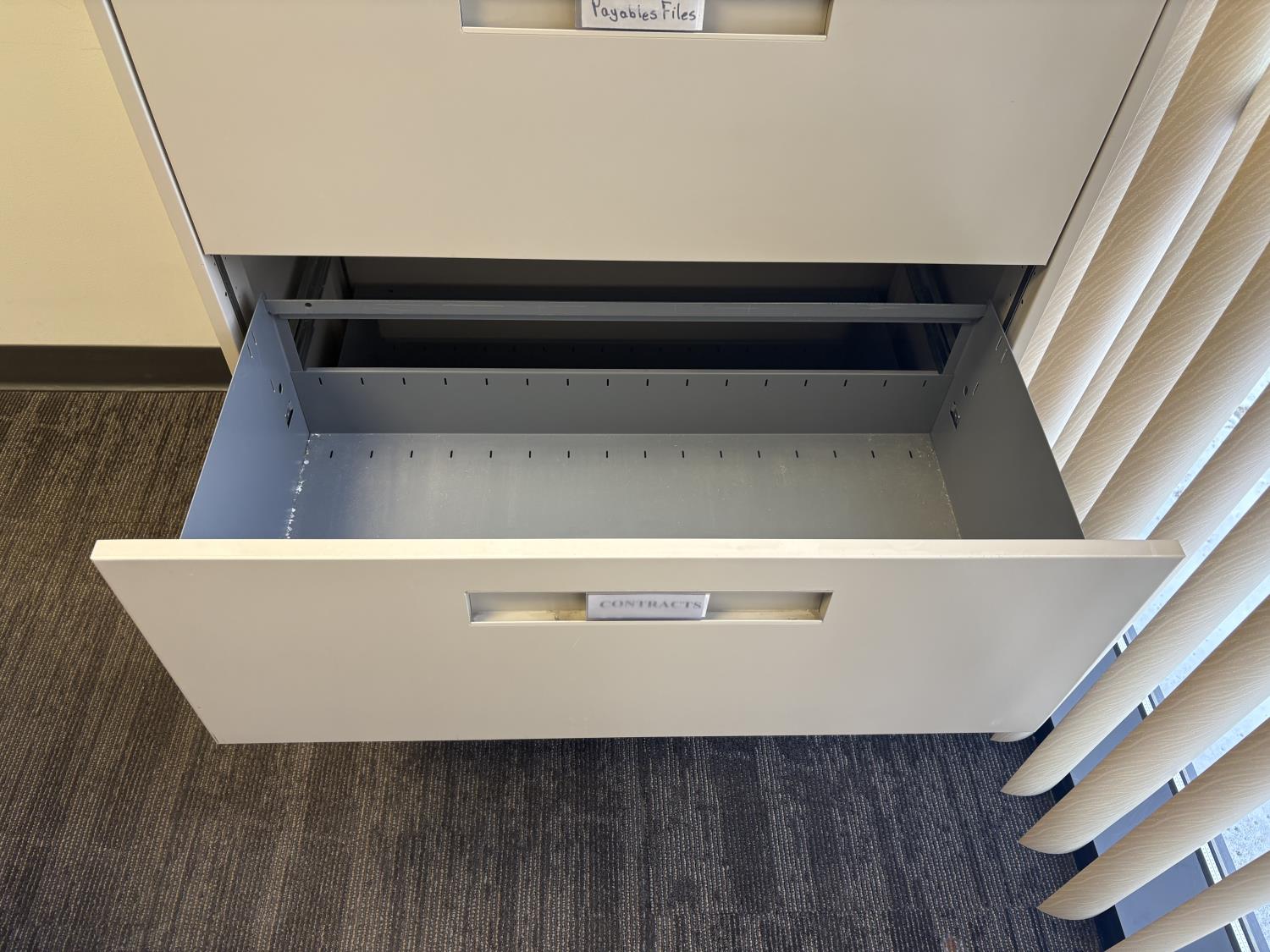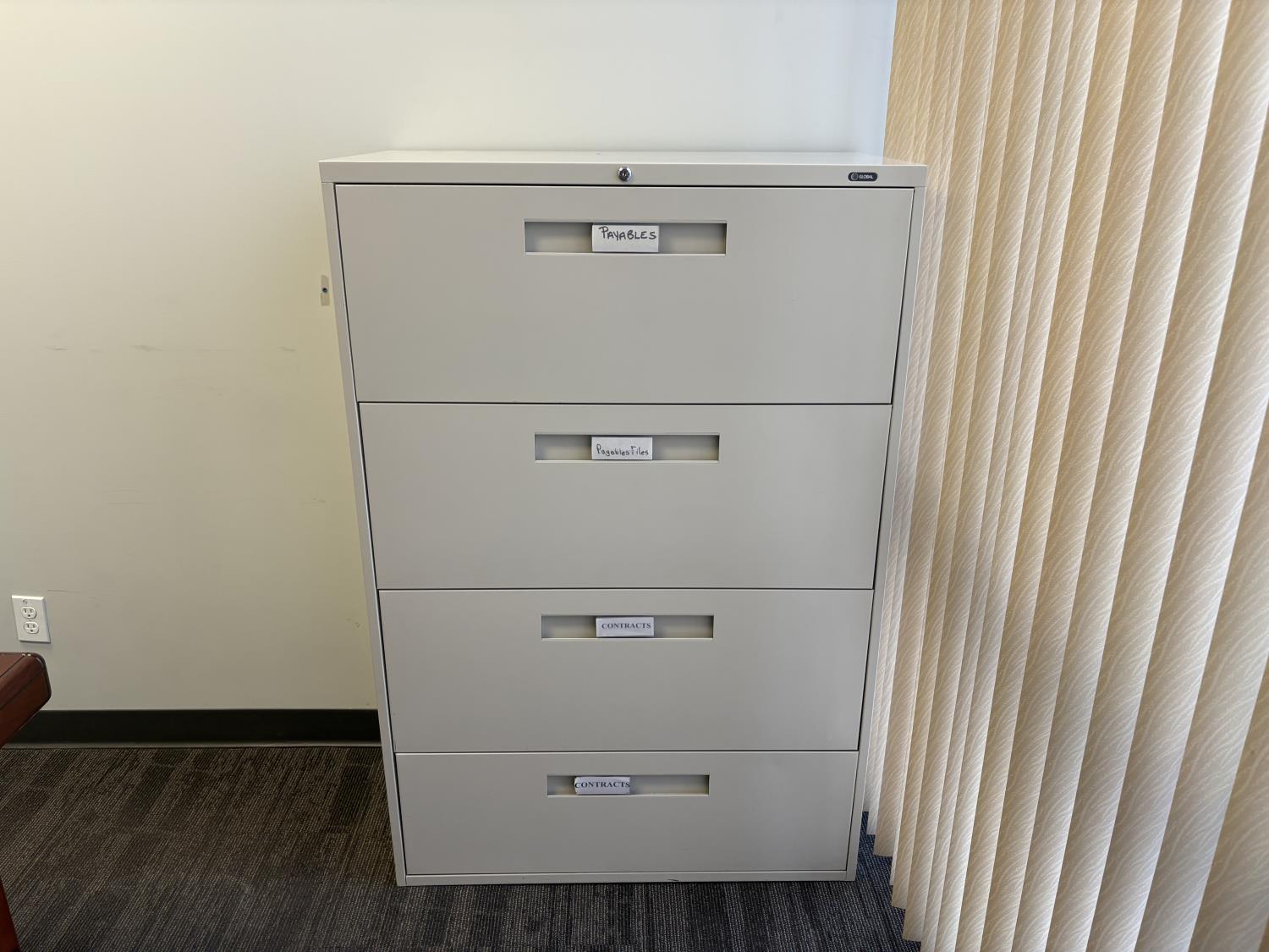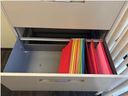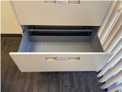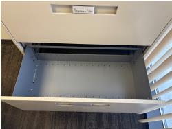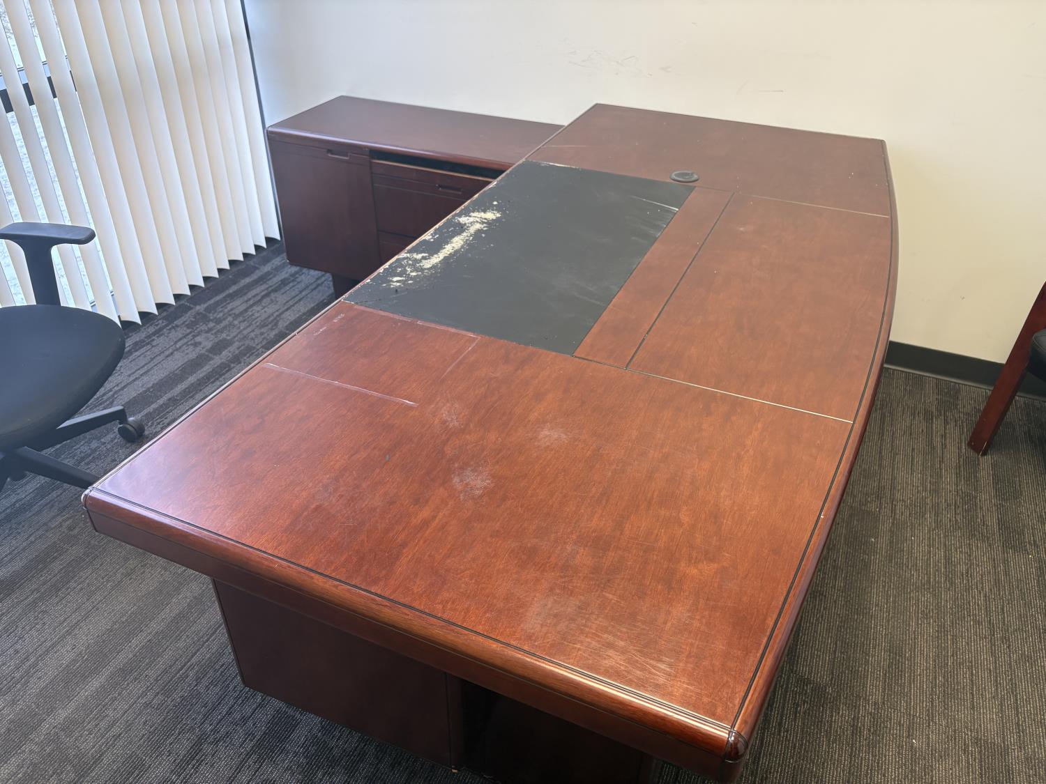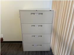 desk 83 inch wide X 39 inch deep X 30 inch high, drawer unit 55 inch wide X 18 inch deep X 27 inch high, metal filing cabinet 54 inch high, 36 inch wide, 18 inch deep