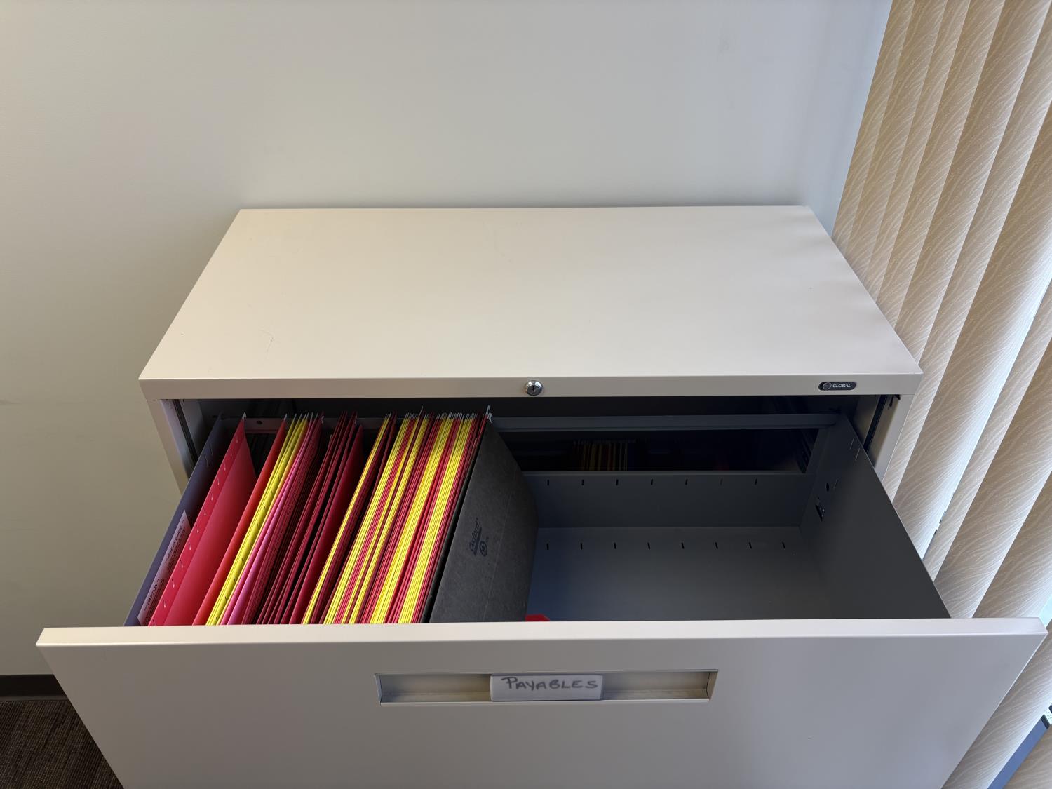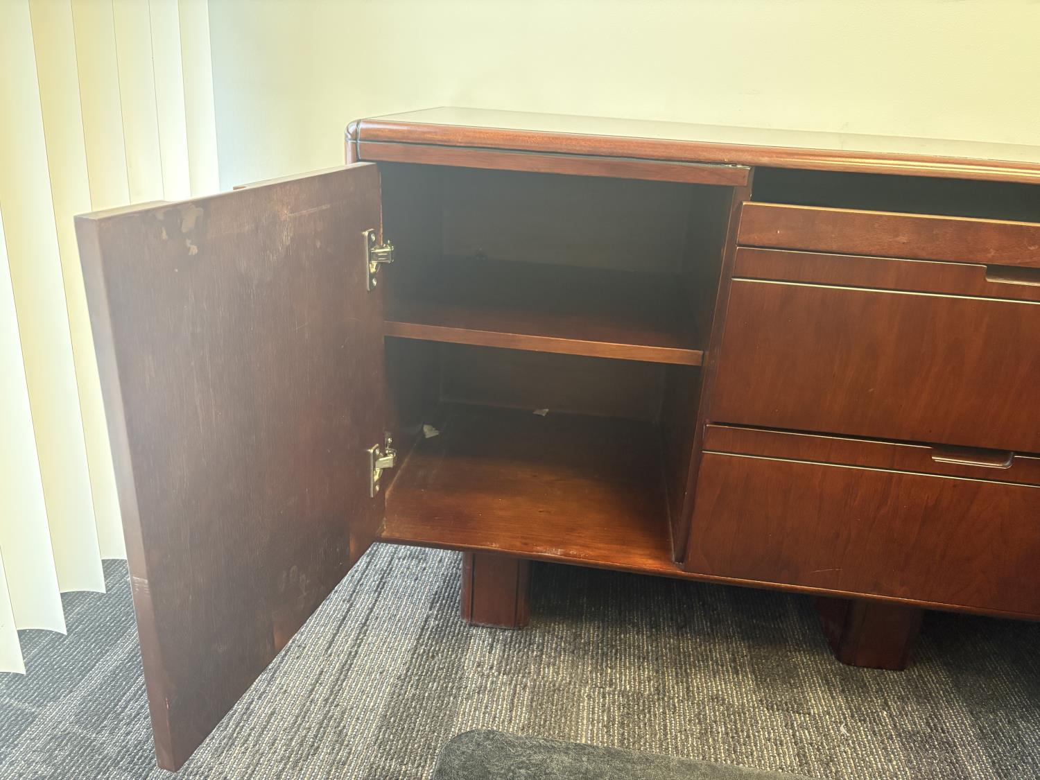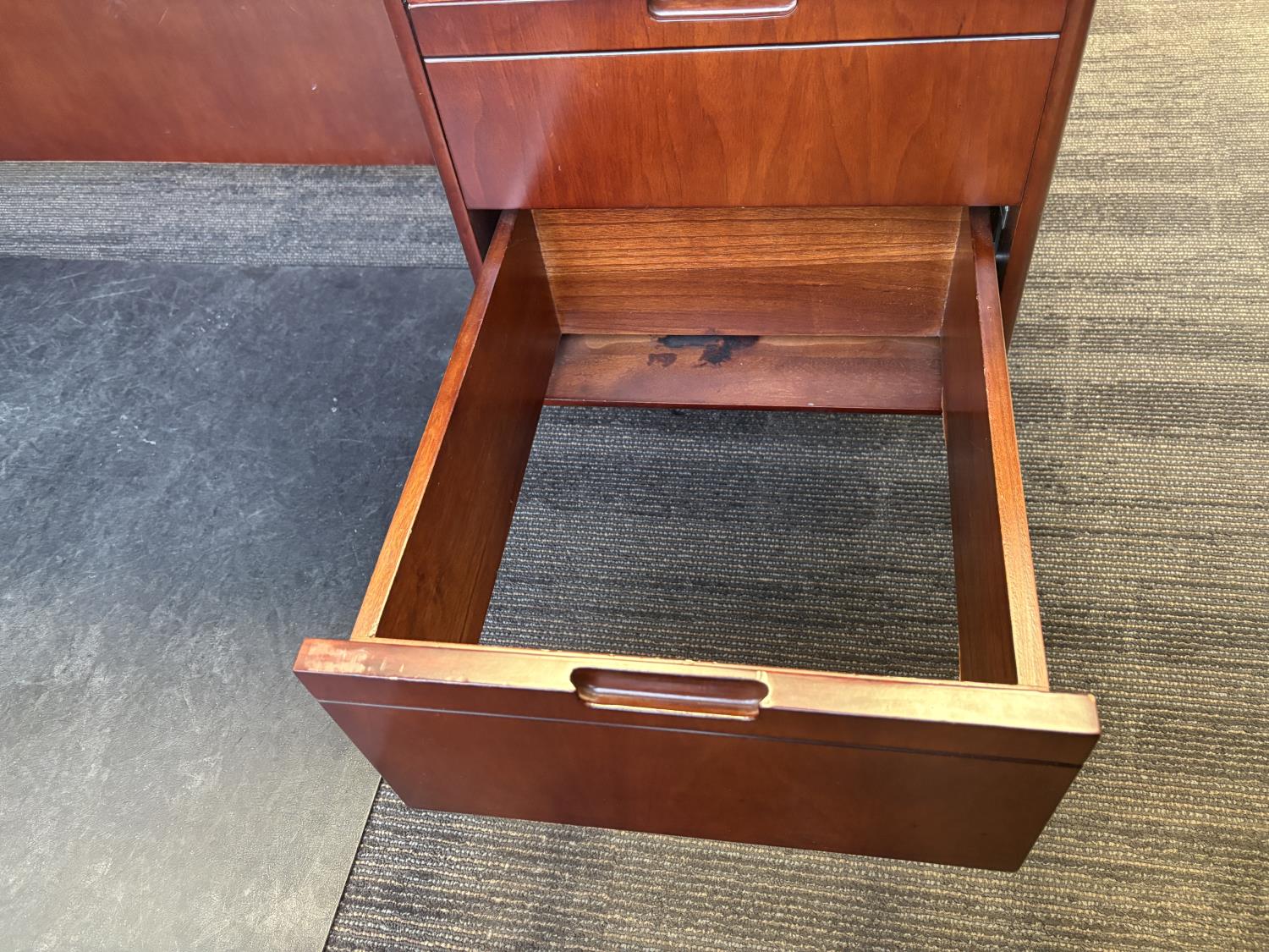 desk 83 inch wide X 39 inch deep X 30 inch high, drawer unit 55 inch wide X 18 inch deep X 27 inch high, metal filing cabinet 54 inch high, 36 inch wide, 18 inch deep