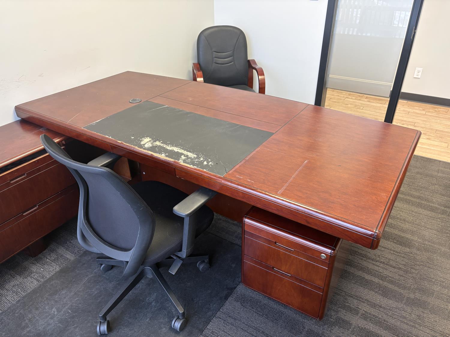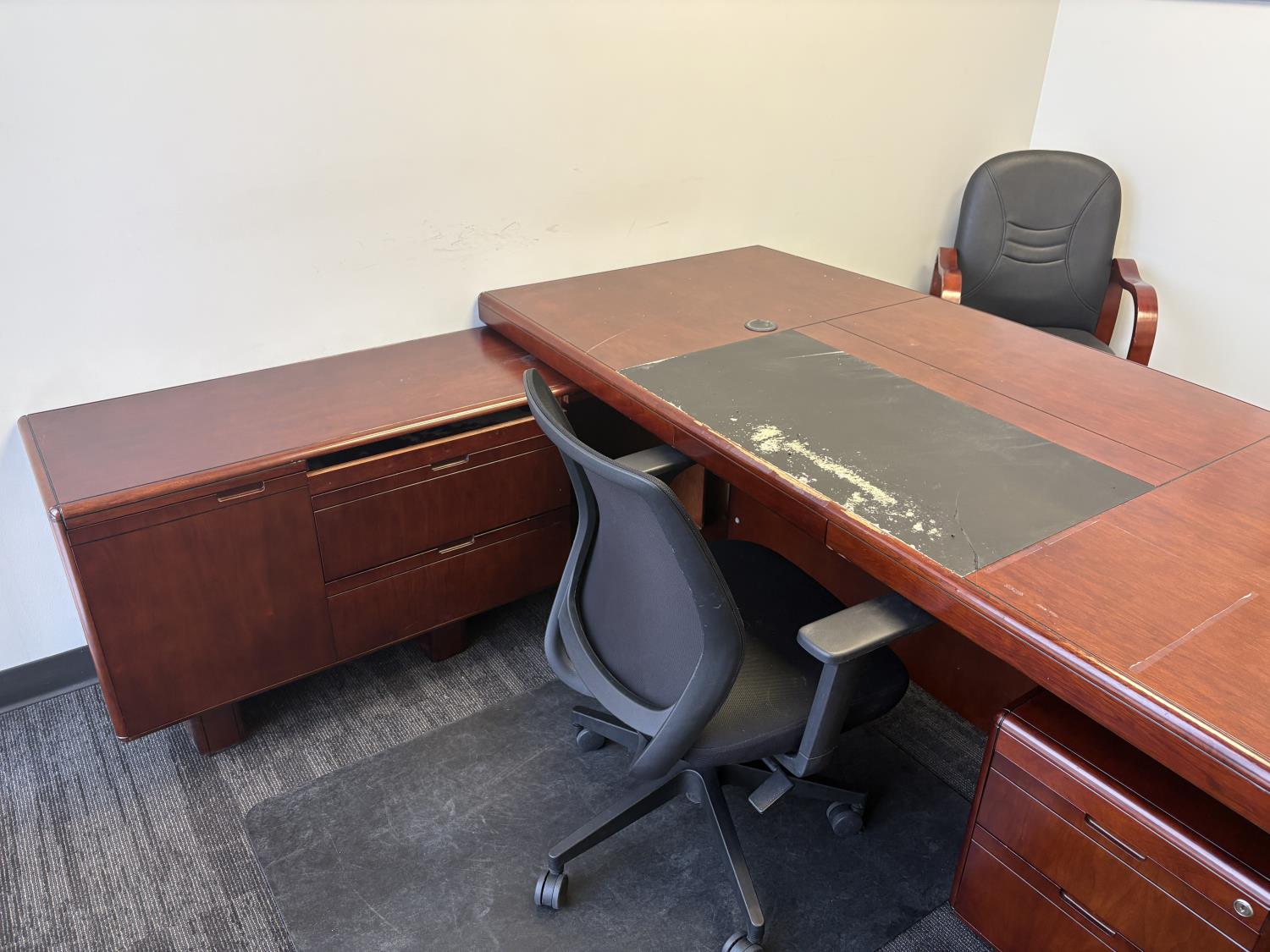 1117 Office Desk, Drawer Unit, Metal Filing Cabinet, Swivel & Leather Chair